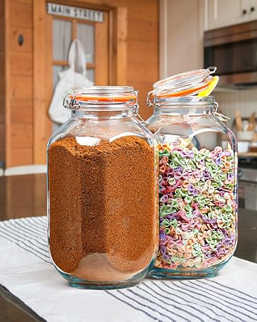Perfect Food Storage Set: These glass canning jars measures 5.8″Wx5.8″ Wx11.5″H, a 3.3″ mouth diameter. 1 gallon capacity, the perfect size to be used as storage jars for pantry and kitchen storage, Ideal for storing pasta, flour, sugar, cereal, coffee, beans, candy, cookies, snacks