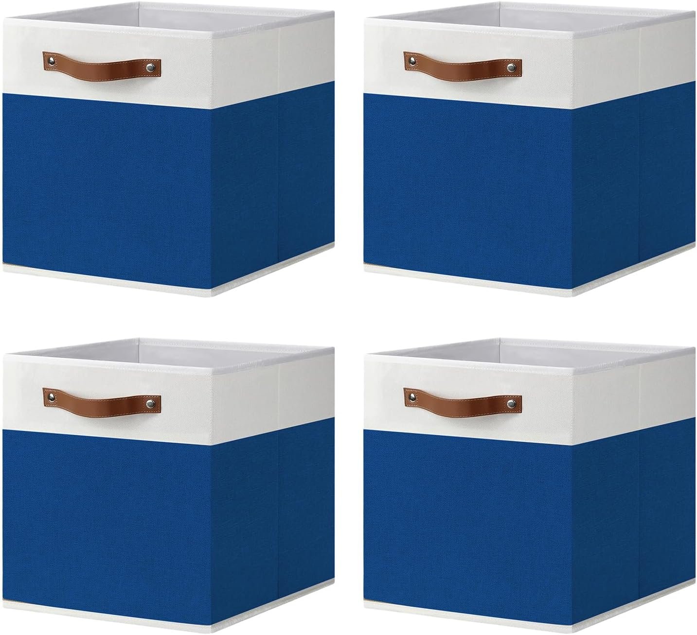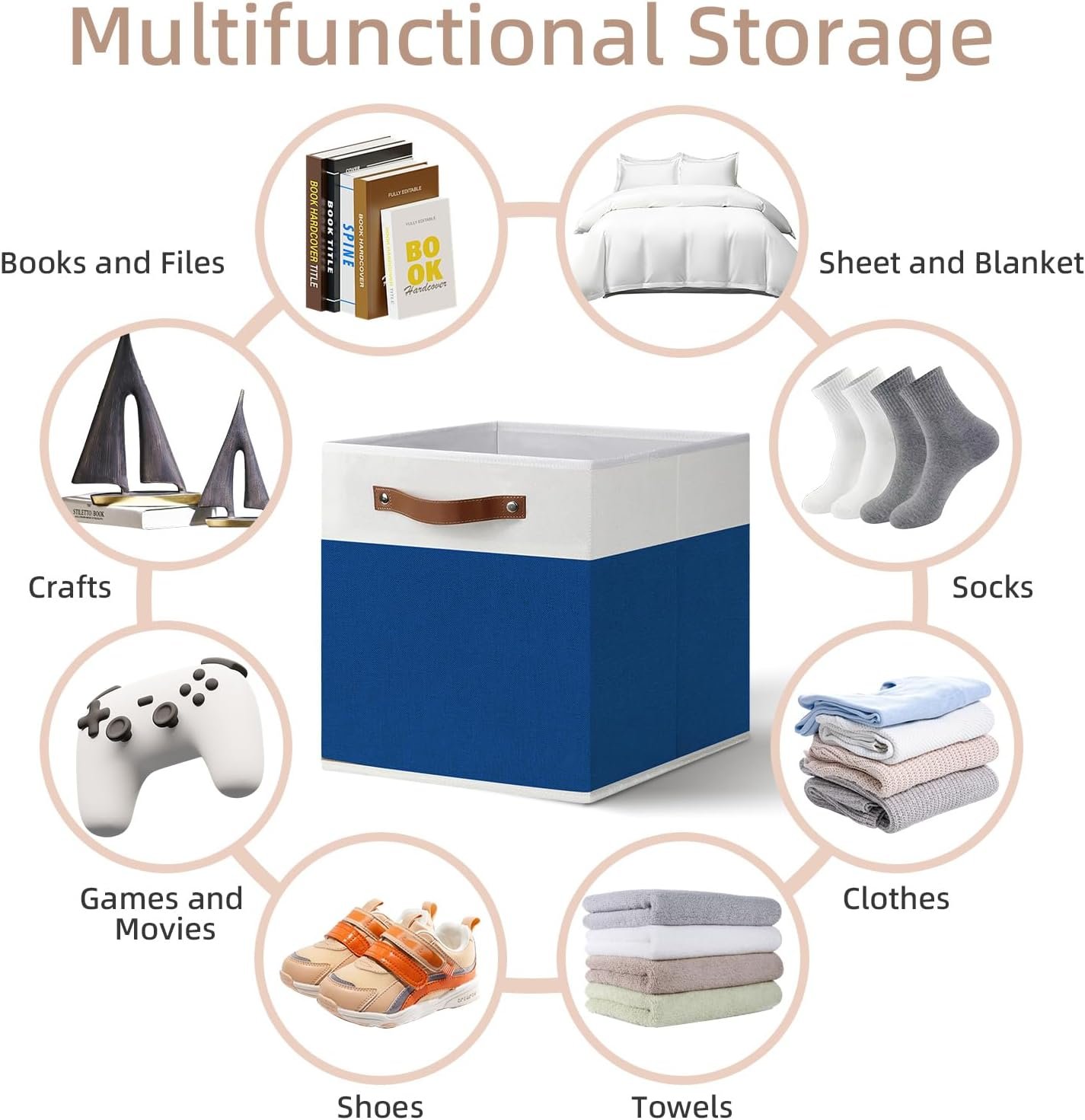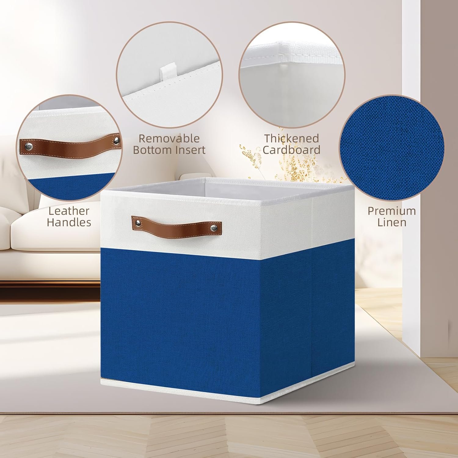 Premium Quality: The 11 inch cube storage bins are made of durable linen fabric with high-quality cardboard on the sides and bottom. The material is safe. The inner 3mm thick cardboard maintains the fabric storage box’s shape and structural integrity. Two leather handles make it easy to move the box. Clean the storage basket using a damp sponge or cloth when necessary