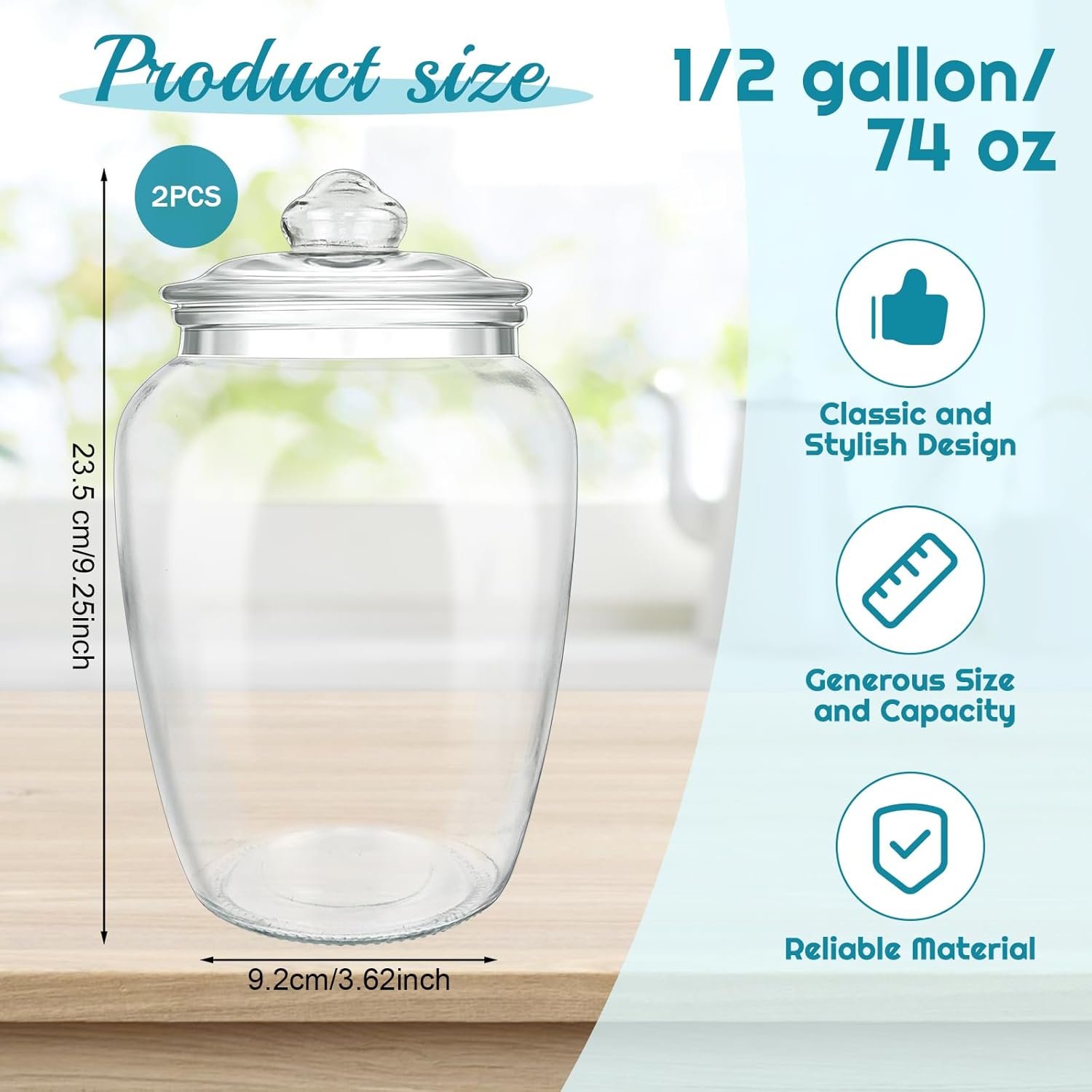 Large and Spacious: you will get 2pcs cookie jars with lids offer a generous size, measuring approximately 9.25 inches x 3.62 inches, With a capacity of about 74 oz, suitable for storing and display a variety of candies