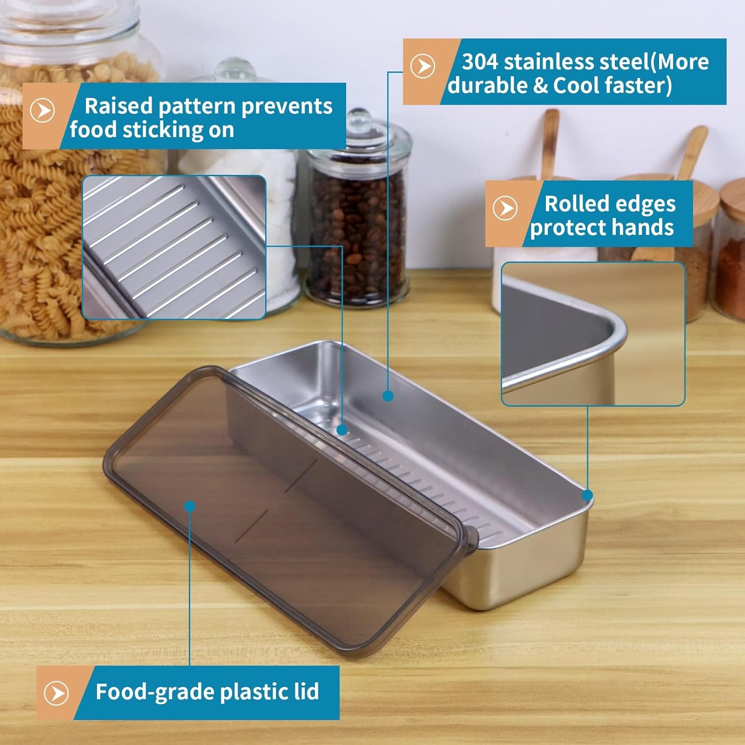 MATERIAL: Our bacon containers are made of sturdy 304 stainless steel and designed with see-through plastic lids, which are food grade, BPA free and corrosion resistant. More durable and cool faster than plastic boxes
