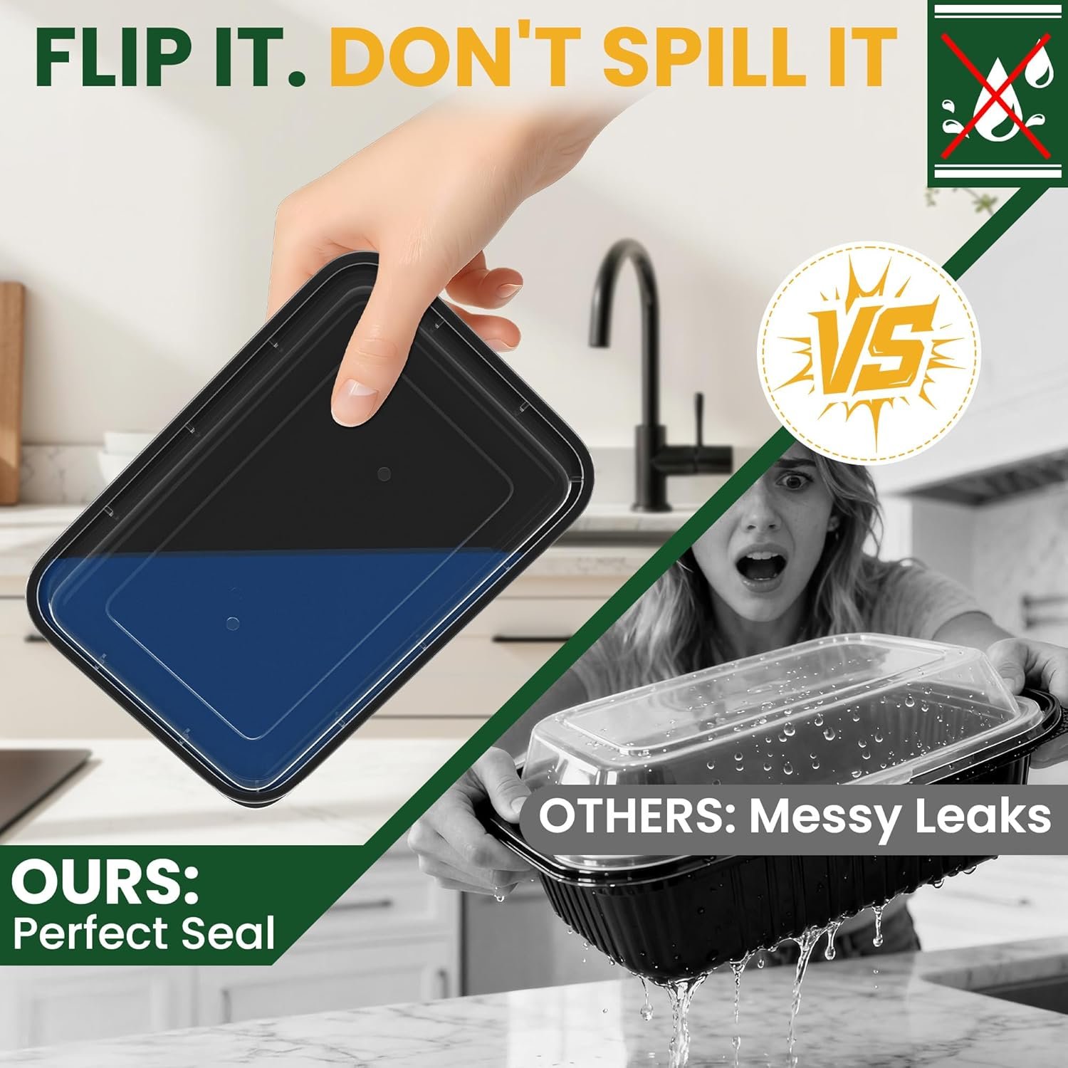 ✅ 50-PACK BULK SET, MULTI-USE: Exceptional value for everyone. This bulk set of 50 take out food containers is perfect for large families, weekly meal prep, catering, or restaurant use. Use them as storage containers with lids for pantry organization, or as reliable plastic containers with lids for every meal.