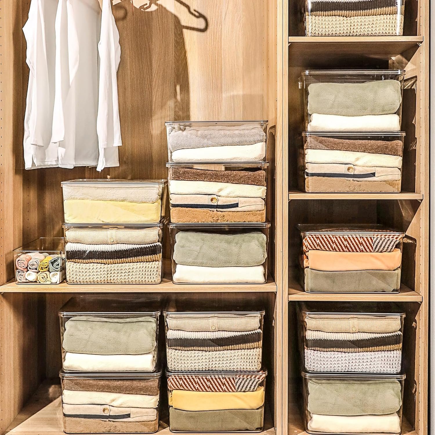 4. These large storage boxes with lids are perfect for sorting and storing clothes, food, shoes, toys, books, scarves, and more. Providing dust protection, the stackable design will fully utilize your closet or other space.