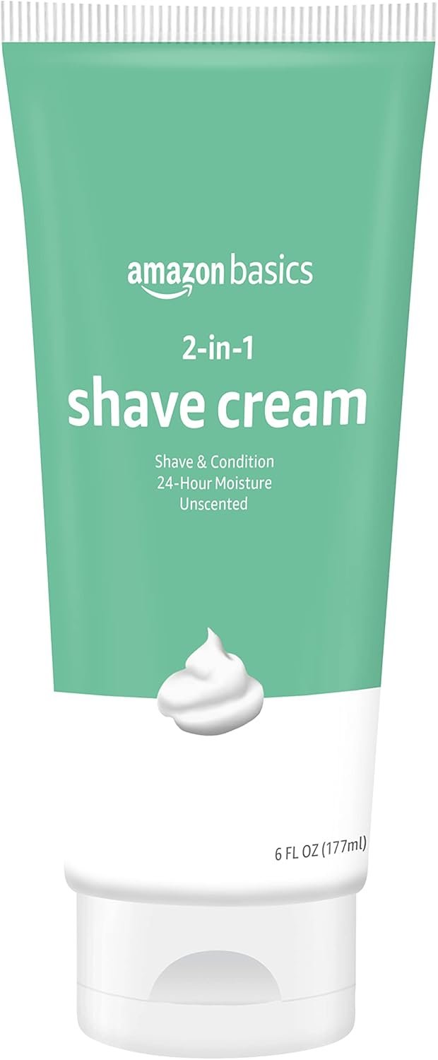 Amazon Basics 2-In-1 Shave Cream, Fragrance Free, 6 Fl. Oz. (Pack Of 2)