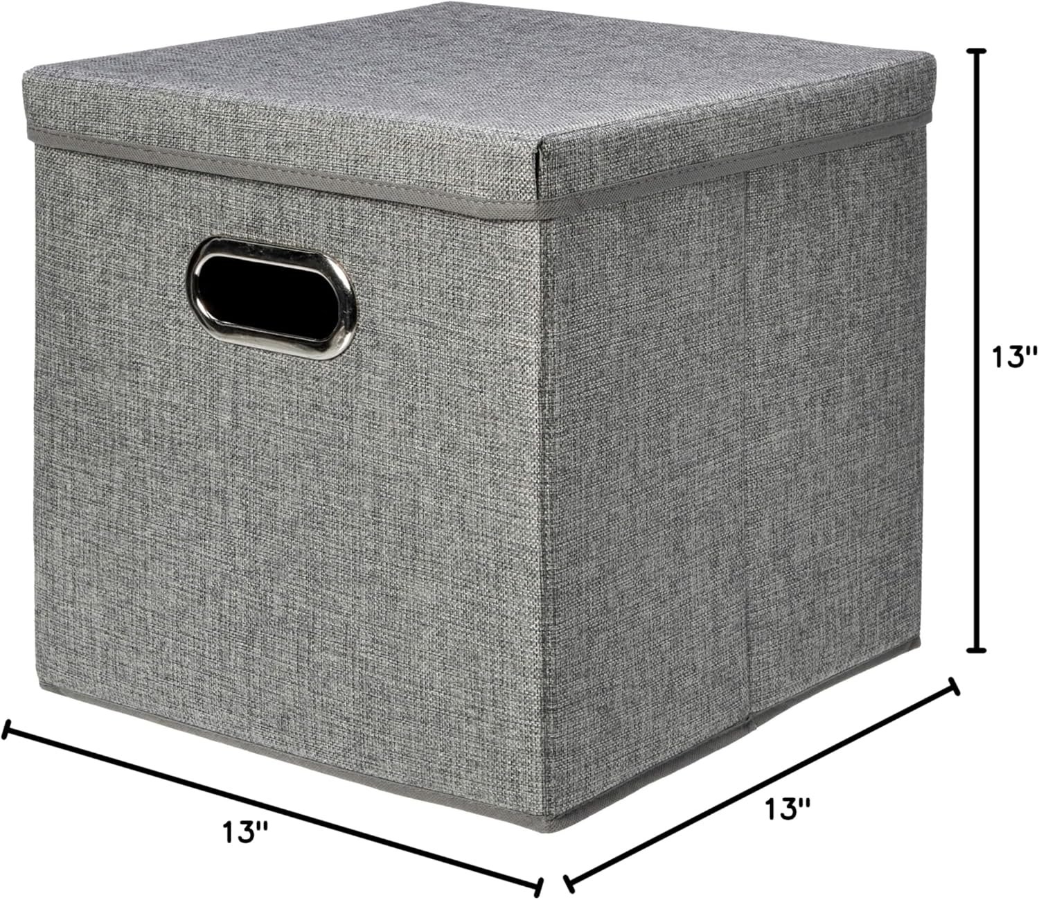 Amazon Basics Foldable Burlap Cloth Cube Storage Bin with Lid, Set of 2