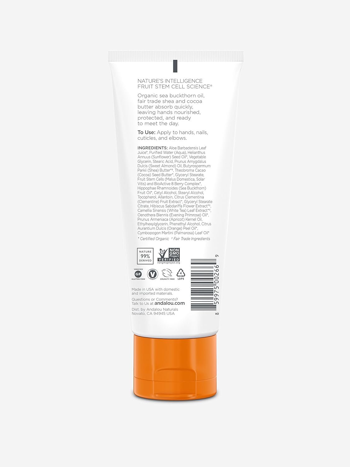 Ingredients From Nature: Andalou Naturals products are 98% nature-derived and vegetarian with a large vegan offering; Plus, we’re gluten-free and cruelty-free—we never test on animals