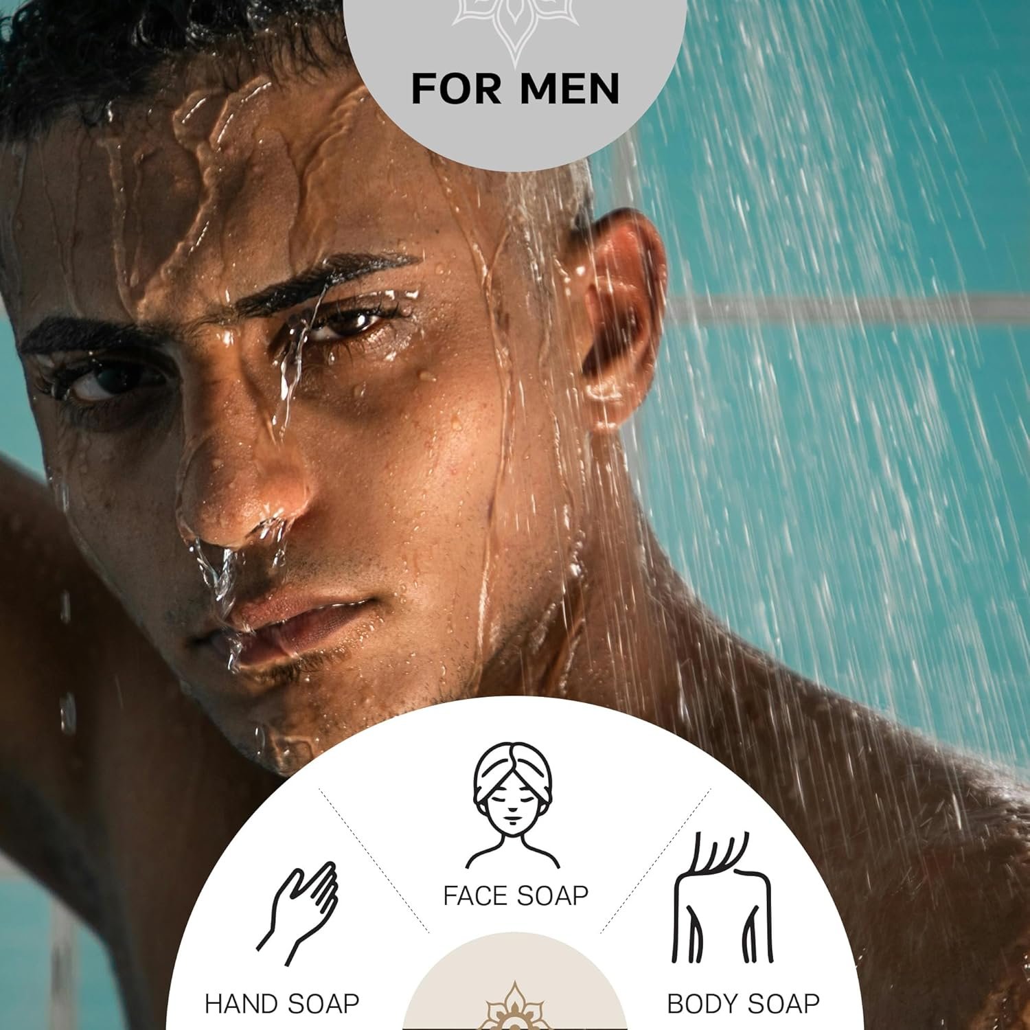 AUTHENTIC BATH & SOAP – Gift Set Bar Soap for Men – Natural, Organic, Moisturizing, handmade soap, Gentle Cleansing Castile mens soap, Oil Control, Cruelty Free, SLS Free. (Pack of 6) 4.2 Oz Each