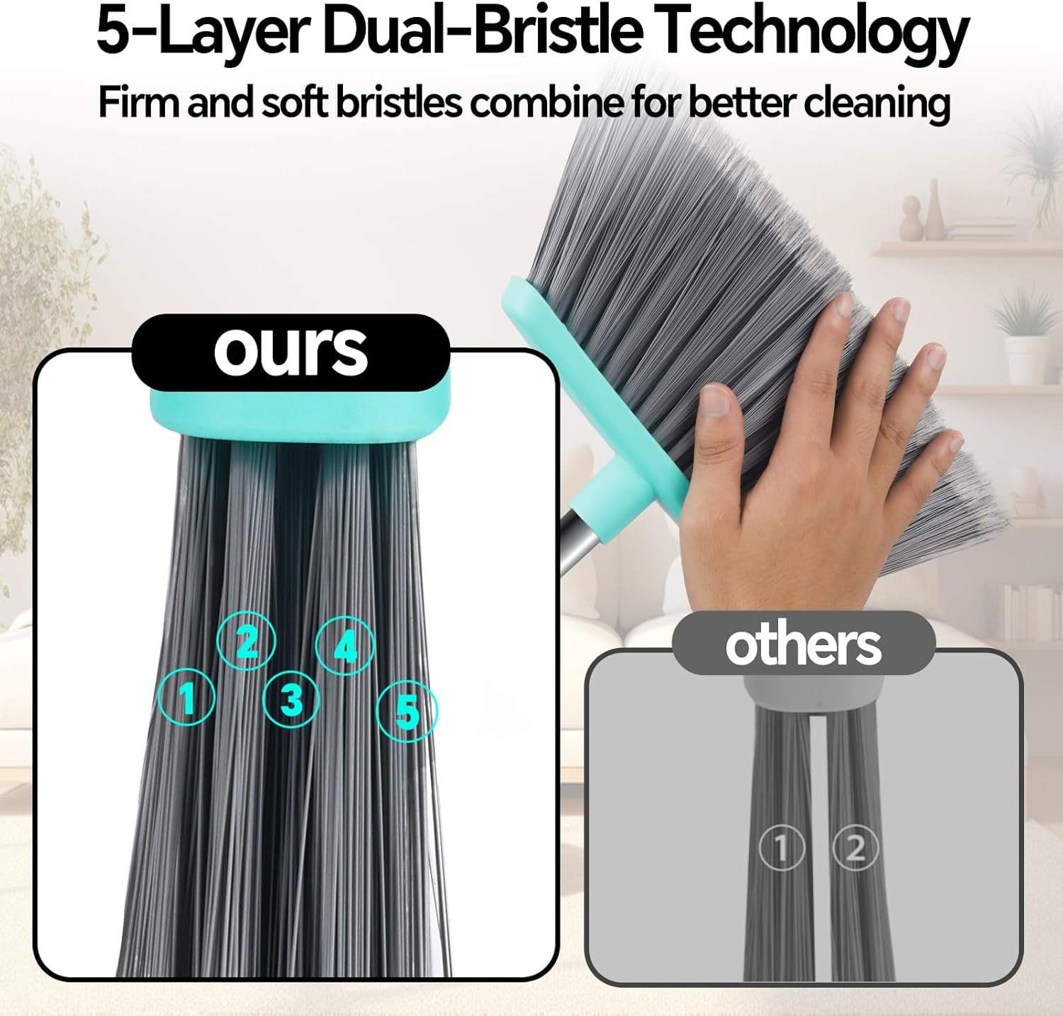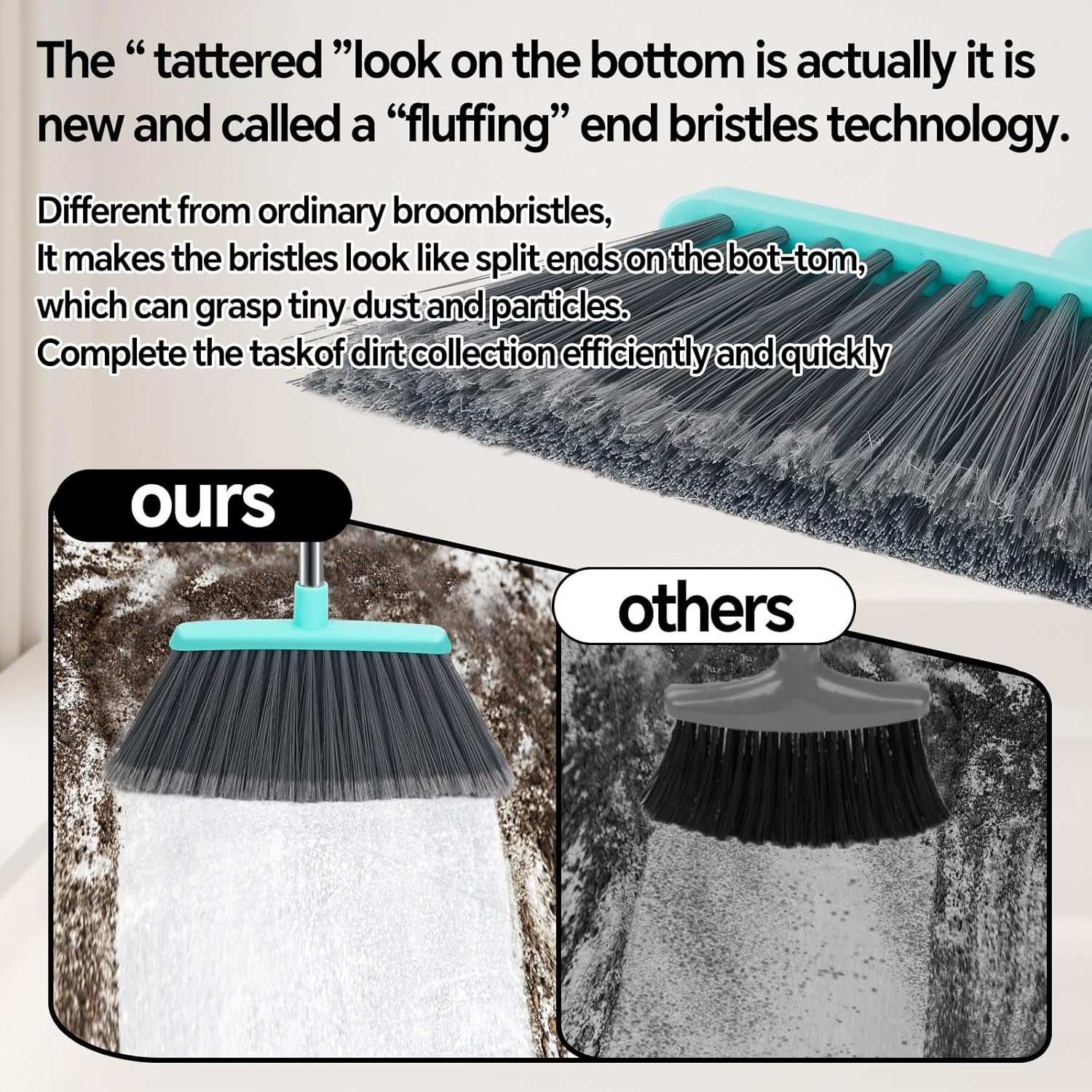 Heavy duty Broom Bristles: This broom and dustpan set comes with unique 5 layers of high quality bristles, which cleans the floor more efficiently. Suitable for indoor and outdoor use, for tile floors, garage floors, and hardwood floor.