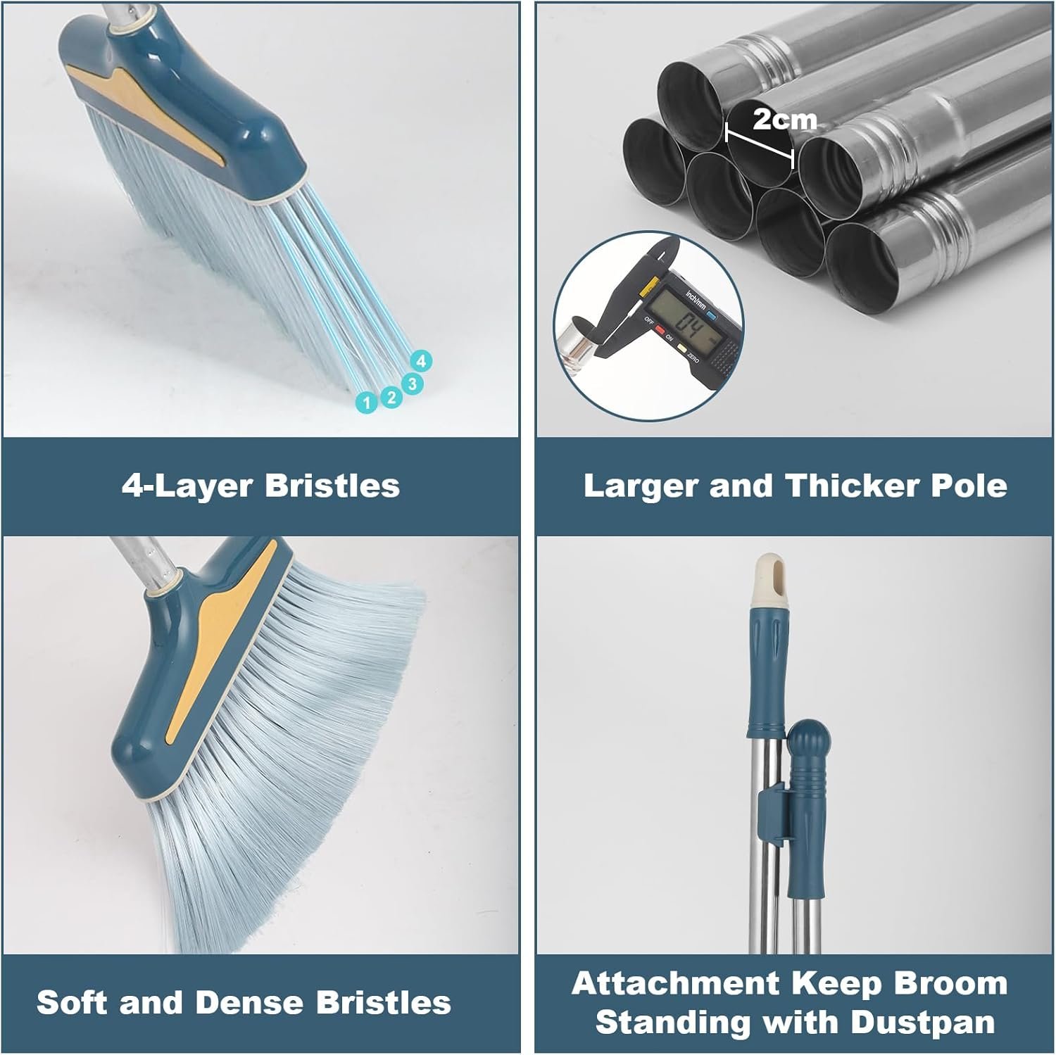 With 4-layer hard bristles, the broom can catch dust, dirt, paper scraps, leaves, and hair effortlessly. The dustpan features a flexible rubber lip for a snug fit to ground, ensuring thorough cleaning. Built-in teeth are longer, denser, and more numerous, making hair removal quick and easy