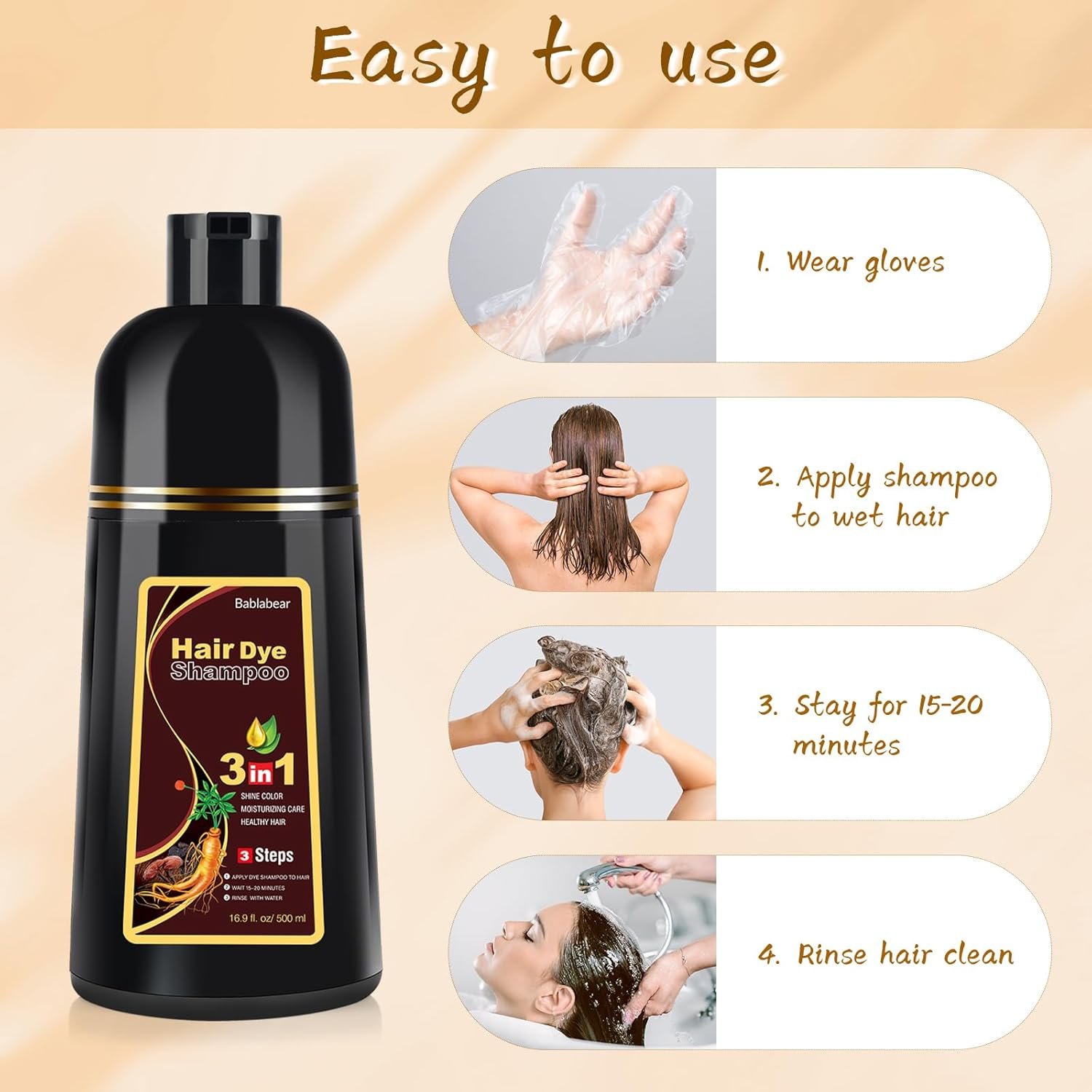 【Easy to use】 All you need to do is apply the color shampoo while your hair is dry like a normal shampoo, leave it on for 15-20 minutes and rinse it out completely. Effortless.