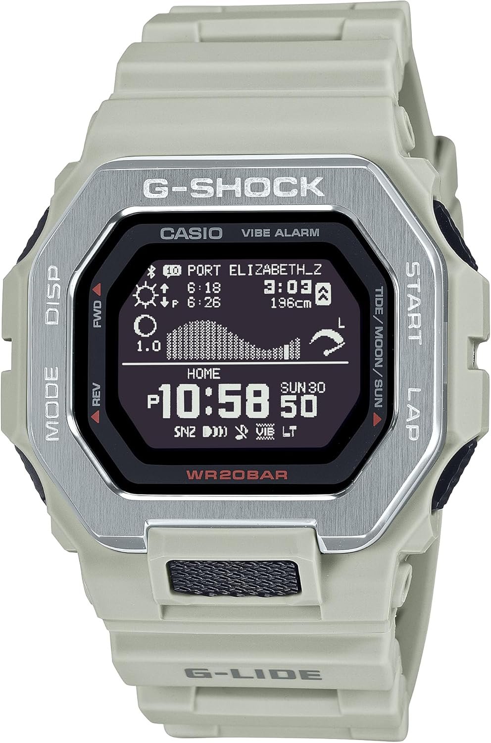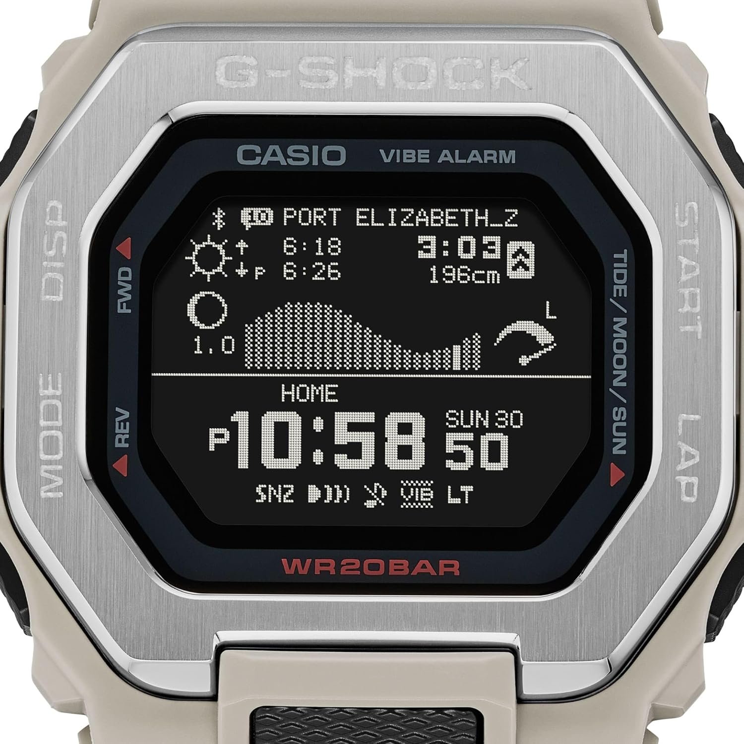 Take it to the waves with the GBX-100 smartphone-linked timepiece inspired by natural beach colors. From the G-LIDE sports line for the world’s top surfers and extreme sports fans. Just select one of 3,300 surf spots around the world on the dedicated smartphone app and send tide patterns, daylight conditions, and other location-specific information to the watch. The wide watch face with high-resolution Memory in Pixel (MIP) LCD provides the same clear readings of tide graphs and moon age as previous models, as well as high/low tide times and levels, and sunrise/sunset times — all at a glance.