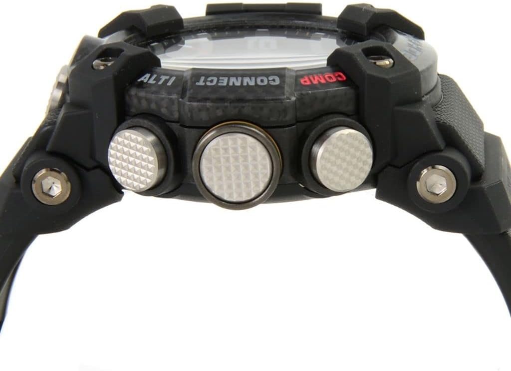 From Casio G-Shock, the innovators of tough timekeeping, comes the GGB100 Master of G Mudmaster watch series that has been designed to endure the toughest environments. This watch features a carbon core guard structure case, in black with grey accents, that allows the internal mechanics of the watch to be protected from shock-induced damage. This watch is mud resistant with metal buttons that form a tight seal on the case, a dual back cover that consists of a stainless steel panel back and an outer cover made of shock resistant fine resin embedded with glass fibers, and the bezel has three layers of fine resin with carbon fiber inserts. The Quad Sensor capabilities provide instant access to a compass, altitude/barometer, thermometer, and an accelerometer that keeps track of your step count. Additionally, this watch connects via Bluetooth to a special G-Shock app that helps with the configuration, as well as records altitude data, route information, and step counts. These recordings are used to create an activity log you can use for tracking. Mode Switching Customization allows you to turn on and off individual modes and their sequence, for a personalized feel. This capable watch is finished with a grey resin band. Features of this highly functional watch include:Shock ResistantMud ResistantCarbon Core Guard structure200 meter water resistanceGrey resin bandCarbon and resin caseNeobriteDouble LED lightMobile link (Wireless linking using Bluetooth(R))Digital compassAltimeterAuto log data (High/low altitudes, cumulative ascent and descent)BarometerThermometerStep count using a 3-axis acceleration sensor: 0 to 999,999 step count display rangePower Saving: Auto sensor sleep state entry after fixed period of non-activityWorld time with 38 time zonesSunrise, sunset time display1/100-second stopwatchCountdown timer5 daily alarmsFull auto-calendar (to year 2099)12/24-hour formatAnalog: 3 hands (hour, minute (hand moves every 10 seconds), second)Digital: Hour, minute,