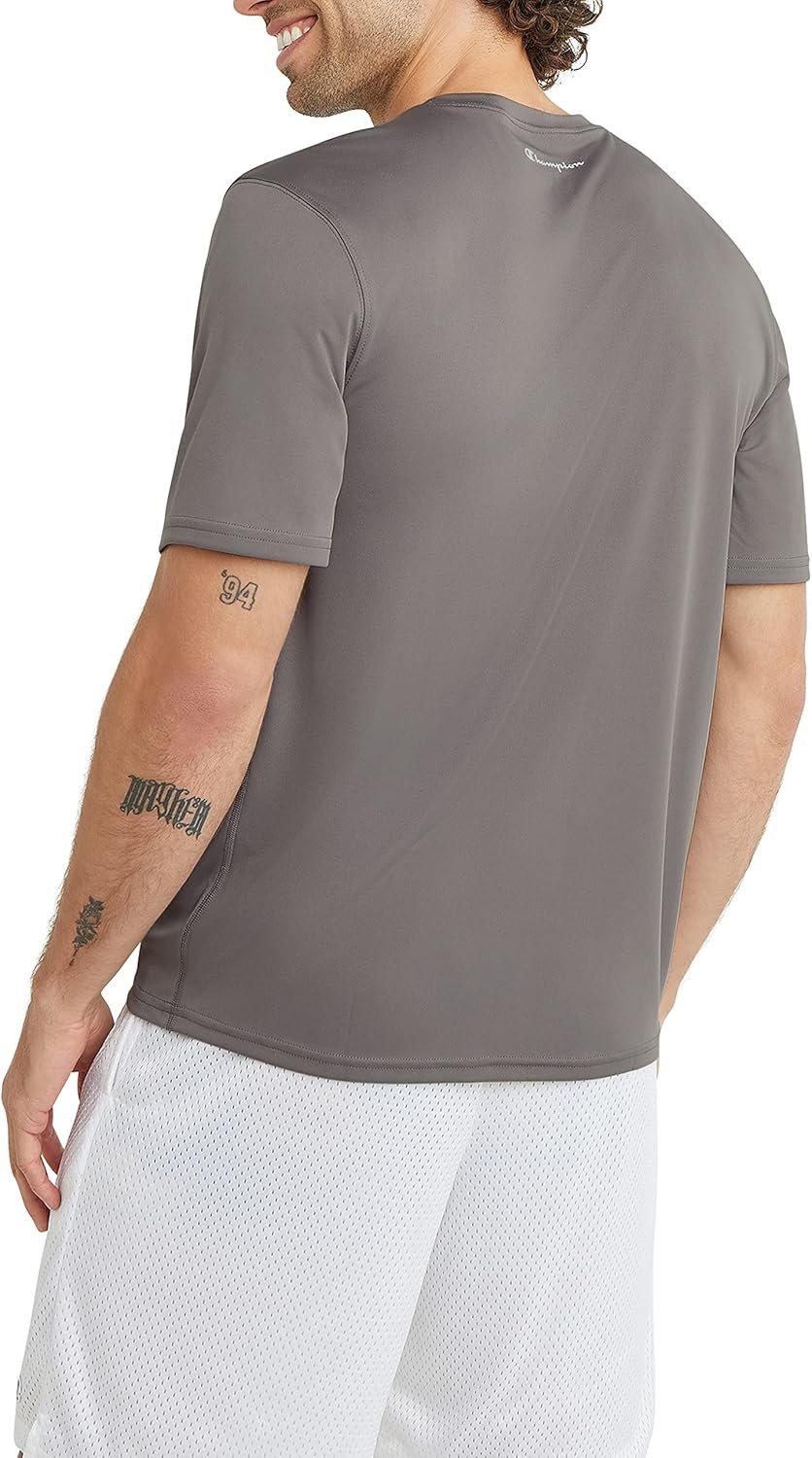 BETTER SPORT STYLE. Work hard and play hard with this men’s short-sleeve t-shirt – built for your most active days. Crafted with Double Dry™ technology and anti-odor protection, this tee keeps you feeling cool and comfortable all day long. This men’s t-shirt is stamped with a reflective C logo at the chest and a script logo at the back neckline for nighttime visibility. It pairs best with everything from Champion shorts to joggers for an athletic look and an easy feel.