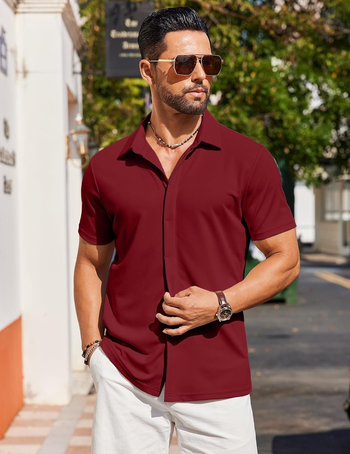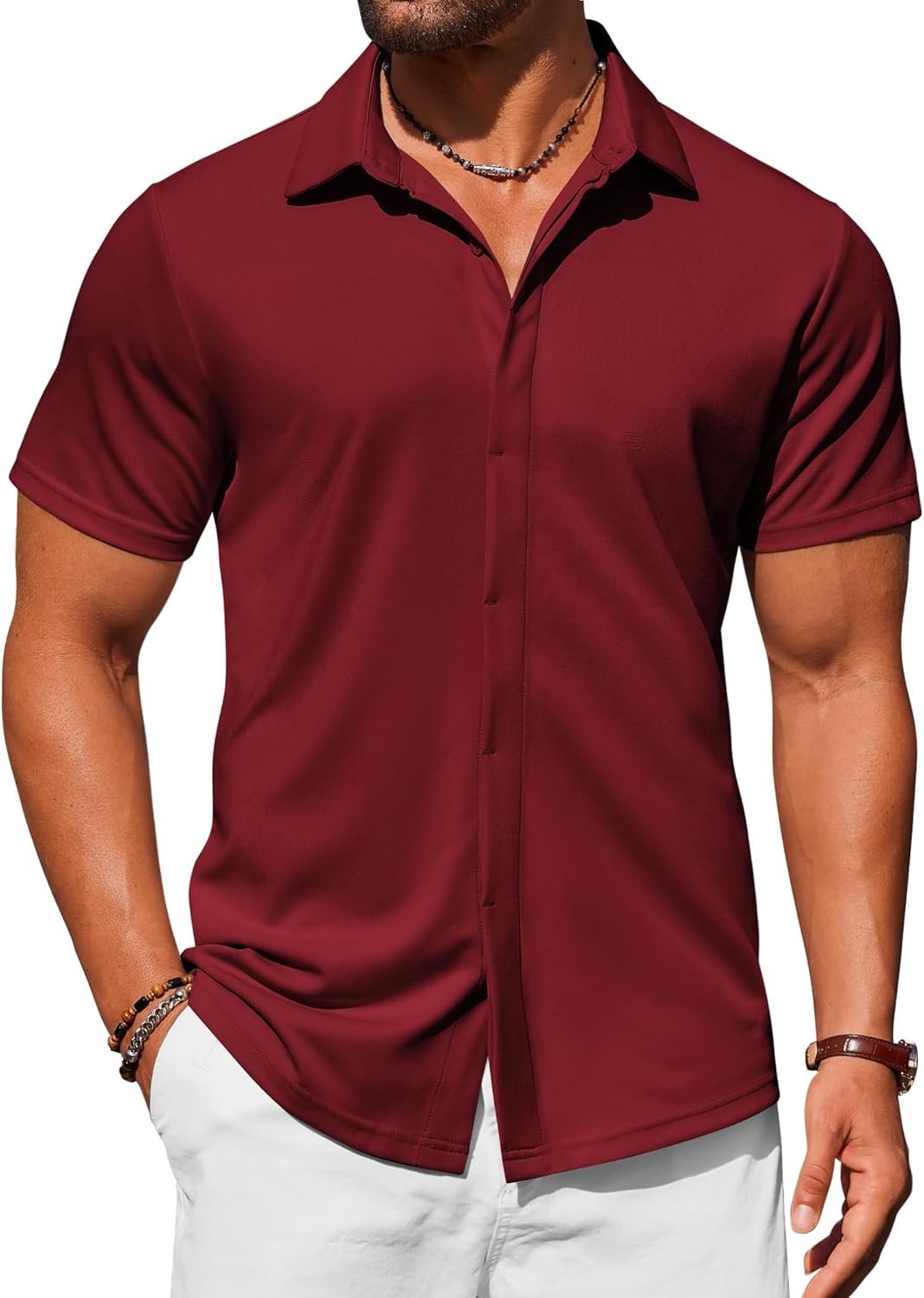 COOFANDY Mens Dress Shirts Button Down Short Sleeve Shirt Summer Shirts Casual Wrinkle Free Muscle Fit Shirts