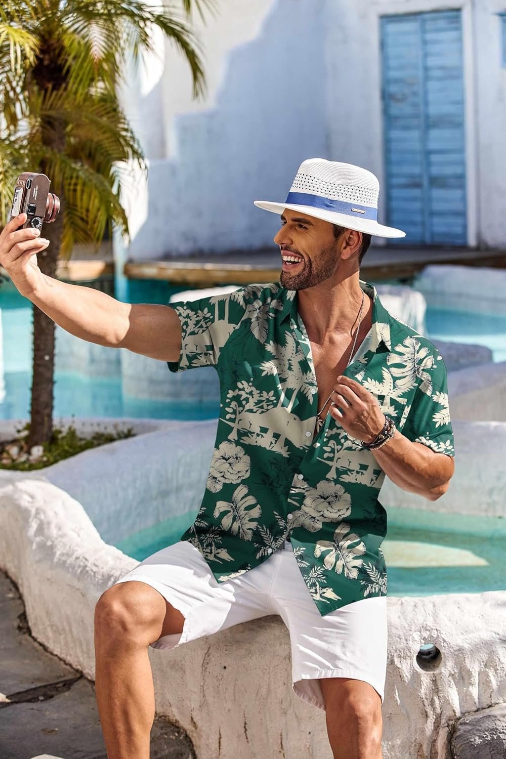 Customers find this Hawaiian shirt to be a great vacation option with vibrant colors that don’t fade, and one customer mentions wearing it dressed up for dinner. The fabric quality receives mixed feedback, with some praising it while others describe it as having a cheap plastic feel. Customers disagree on the sizing, with some finding it perfect while others say it runs small in the shoulder and arm area.