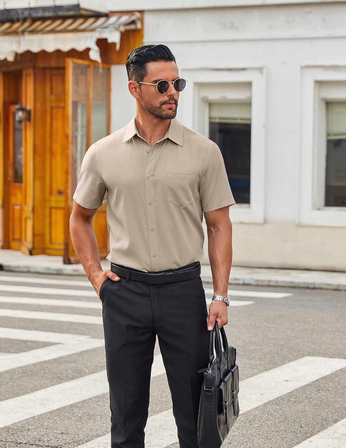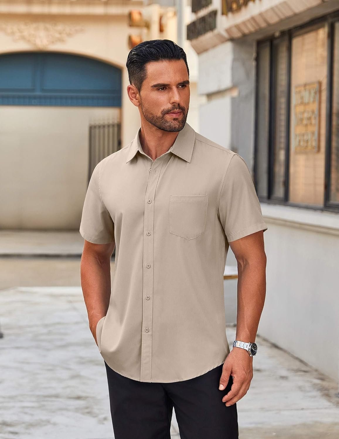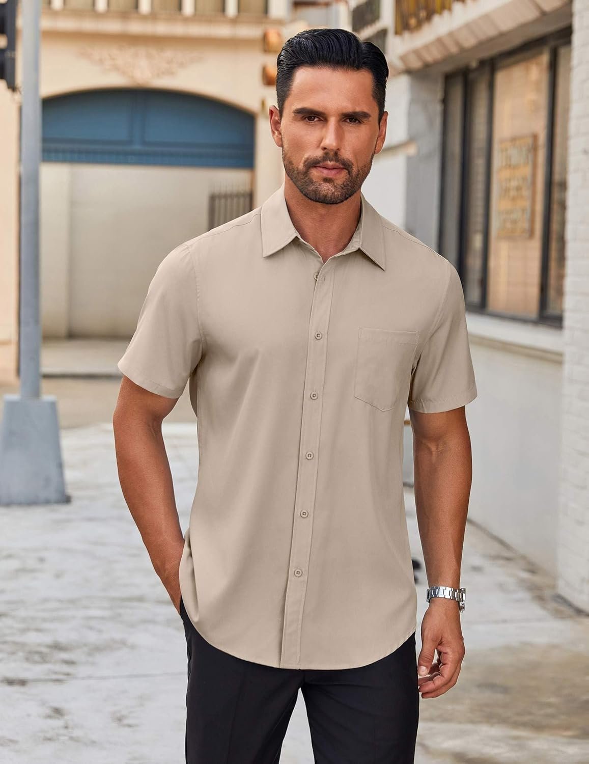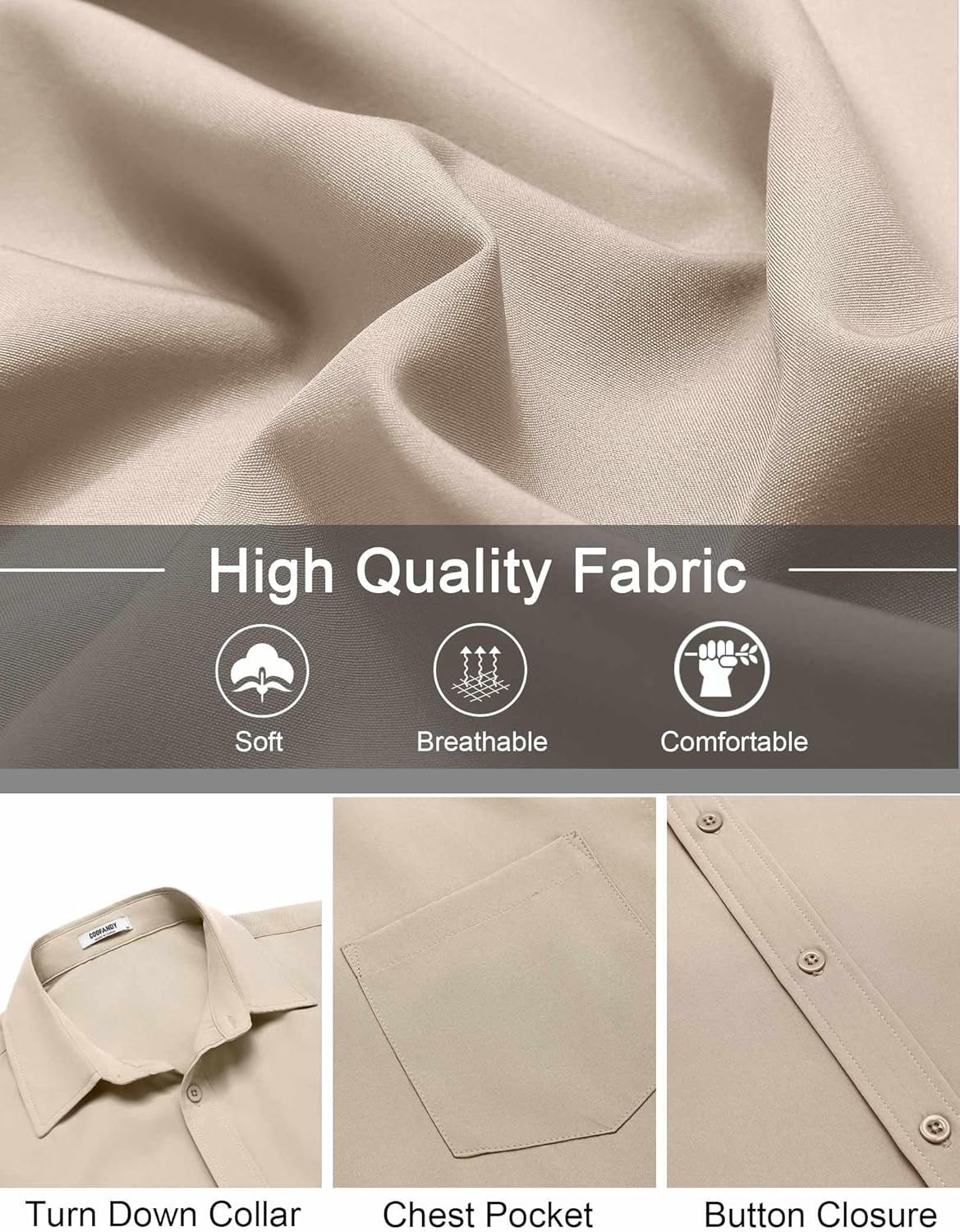 COOFANDY Men’s Short Sleeve Button Down Shirts Casual Dress Shirts for Men Untucked Shirt with Pocket