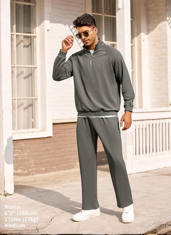 mens tracksuit quarter zip sweatsuit casual 2 pieces outfitmens tracksuit quarter zip sweatsuit casual 2 pieces outfit