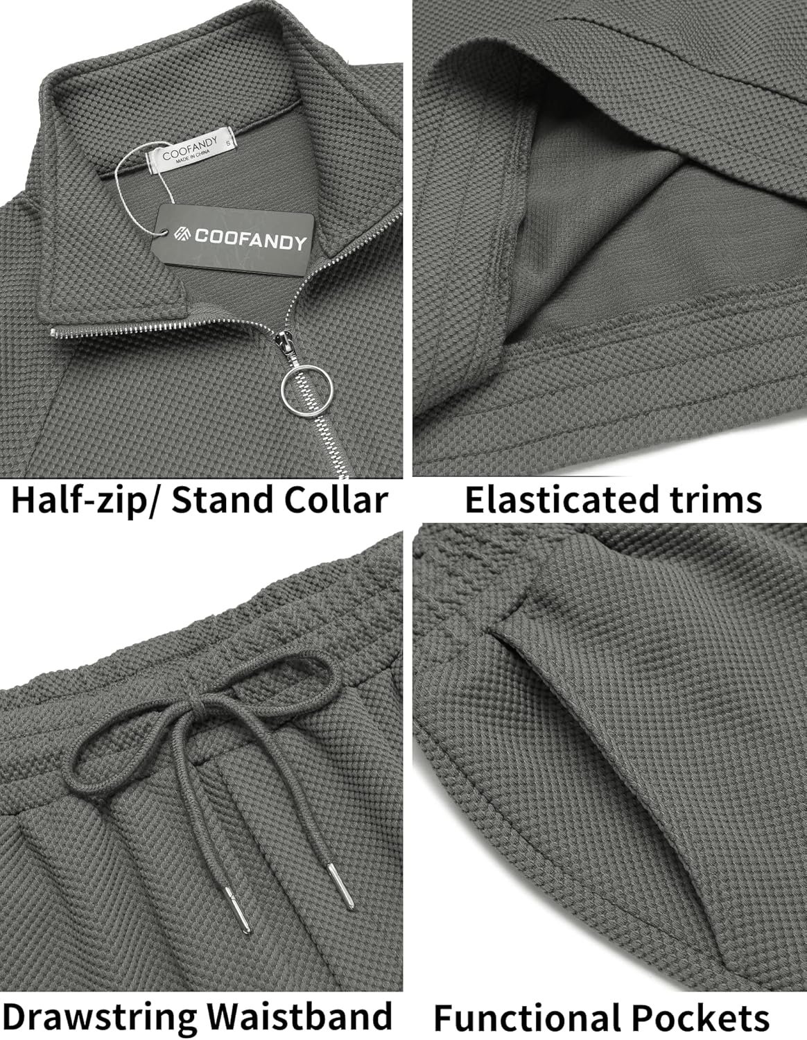Mens 2 Pieces Tracksuit 1/4 Zip Sweatsuit Sets Details Display
