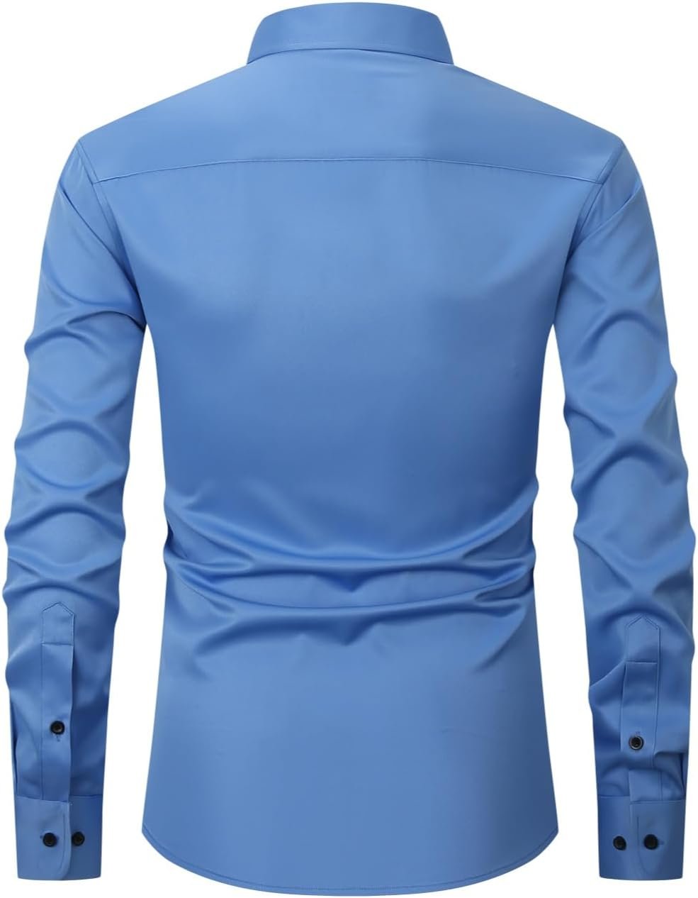 corfty Men Long Sleeve Dress Shirt – Regular Fit Stretch Free-Wrinkle Button Down Shirt
