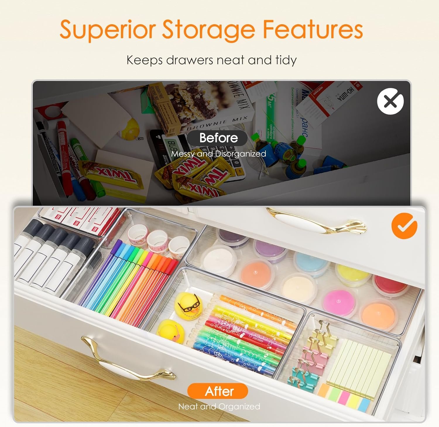 Wide Range of Use Scenarios: Perfect for kitchen, bedrooms, bathroom. Whether it’s stationery, cosmetics, kitchen junk, or snack, you can easily find the right space for everything