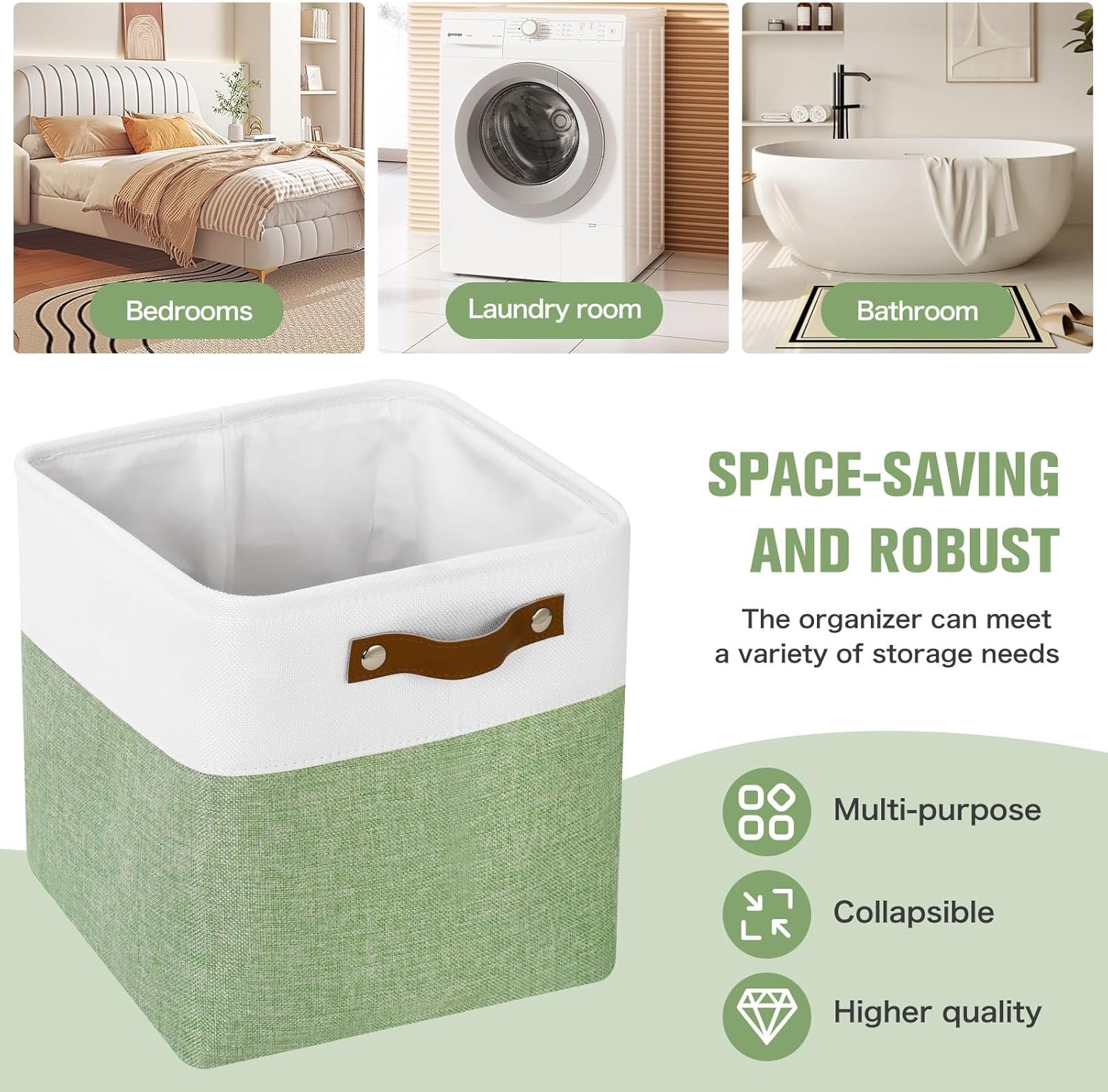【High Quality Materials & Durability】Our 11-inch cube storage bin is made of high-quality linen outer layer and durable EVA polyester inner lining, ensuring a long service life. Easy to clean, just wipe with a damp cloth