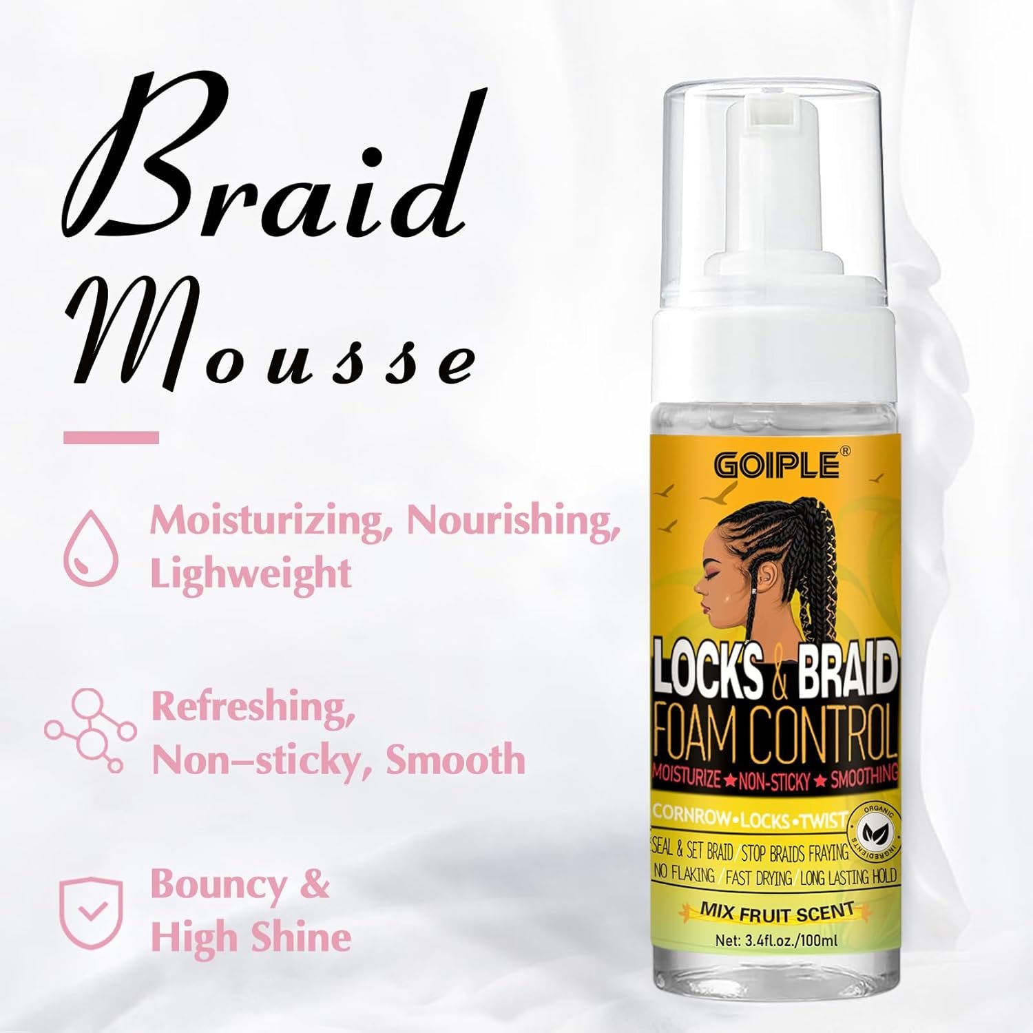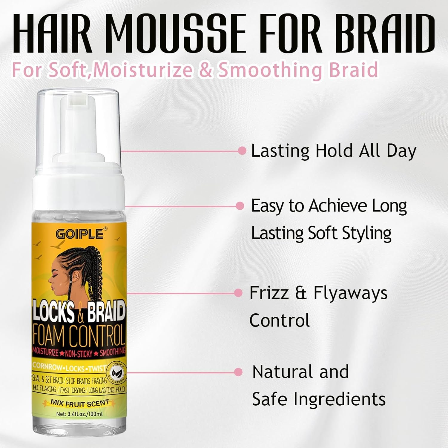 【Extreme Hold Braid Mousse&Braid Gel】 Hair mousse for braid & braiding gel are the perfect finishing touch to all your protective hairstyles because it holds and seals your braids in place and makes them last all day. It locks in moisture and helps you keep your hairstyle longer.