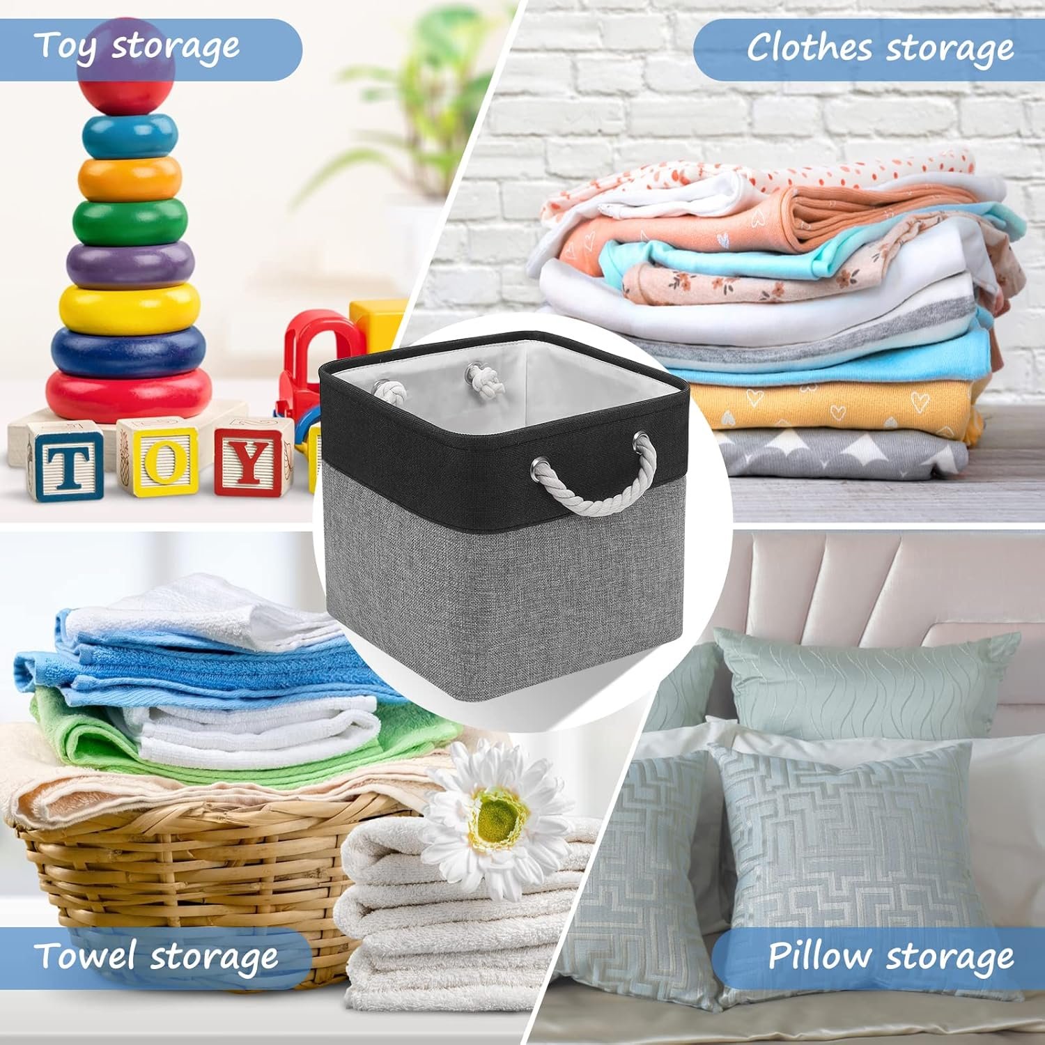 【DECORATIVE STORAGE BASKET】These 11x11x11inches, 6 pack storage bin can hold organize all kinds,It can match many home and office styles. you can place it anywhere you like, cube shelf storage bins for your living room, closet, bedroom, bathrooms, kids room, nursery room, playroom, dorms, raft room and laundry room.