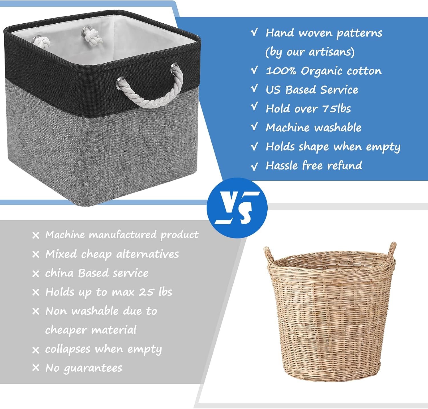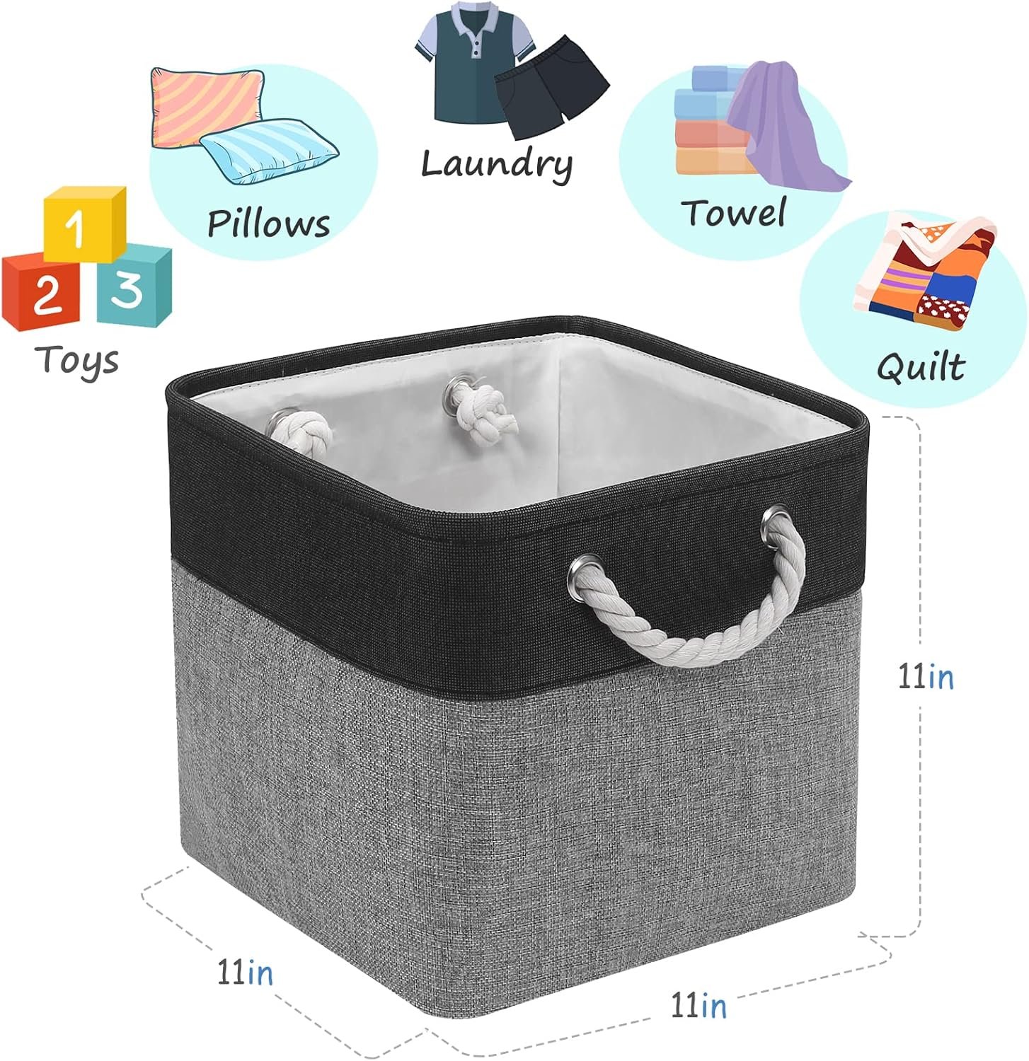 【DURABLE QUALITY MATERIAL】Our 11 in cube storage bins come of durable linen exterior and environmental EVA polyester lining which is easily to clean and just wipe with a wet sponge. Our foldable cube fabric bins come with two rope handles which are attached with reinforced metal eyelet. easy to carry and pull out closet storage basket from shelves.