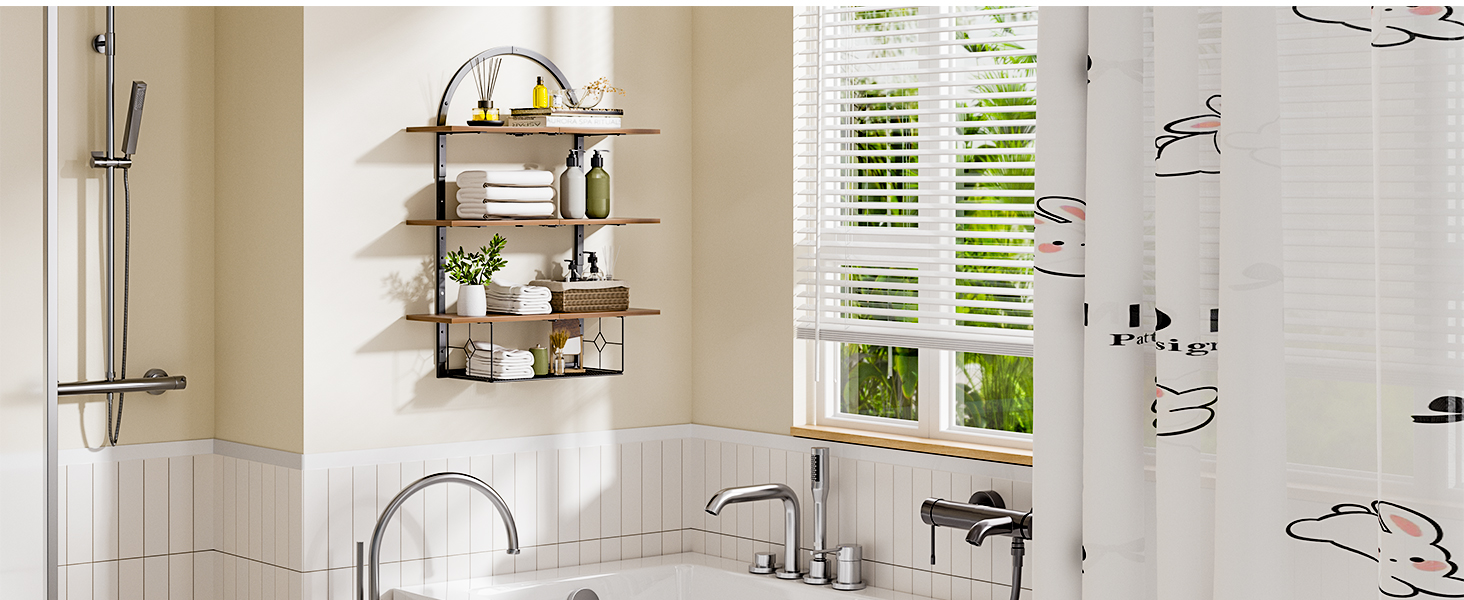 MATERIAL: Crafted from high-quality wooden material, these shelves for bathroom wall are sturdy and durable. The smooth surface ensures easy cleaning, while the robust construction guarantees long-lasting support for all your display needs.