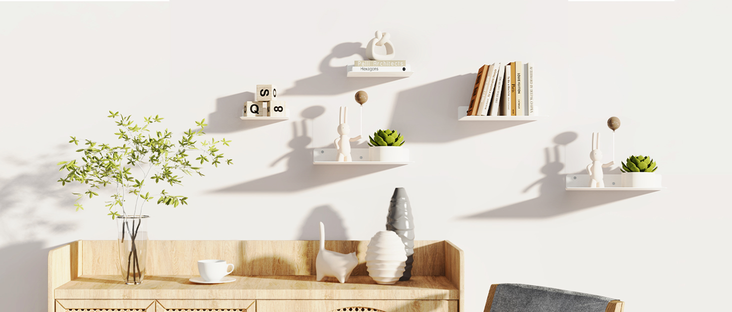 2. Modern design – Adopting simple and rustic design. Metal floating shelves are perfect for showcasing book shelves, plants, bottles, photo frames, and retail displays. It is the wall decor for shops, hotels, offices, and garages, as well as your living room, bedroom, kitchen, and bathroom shelving accessories.
