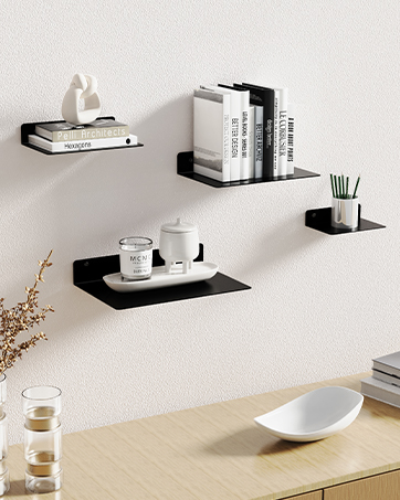 1. Nordic style – If you want a simple shelf, this is an exquisite choice. A simple design with a matte surface to prevent goods from slipping, black storage floating shelves suitable for modern or industrial home styles.