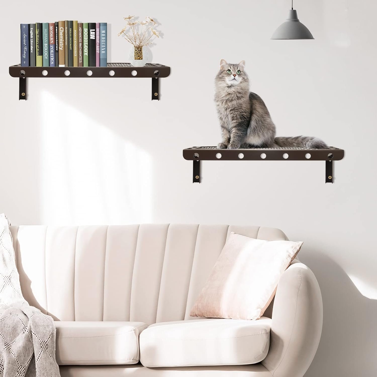【Perfect Gift】This small floating shelf is not only used as a storage rack, the items needed to clean up neatly, but also as a good climbing playmate for your baby pet, when the baby pet is tired, sleepy as a good place to rest.