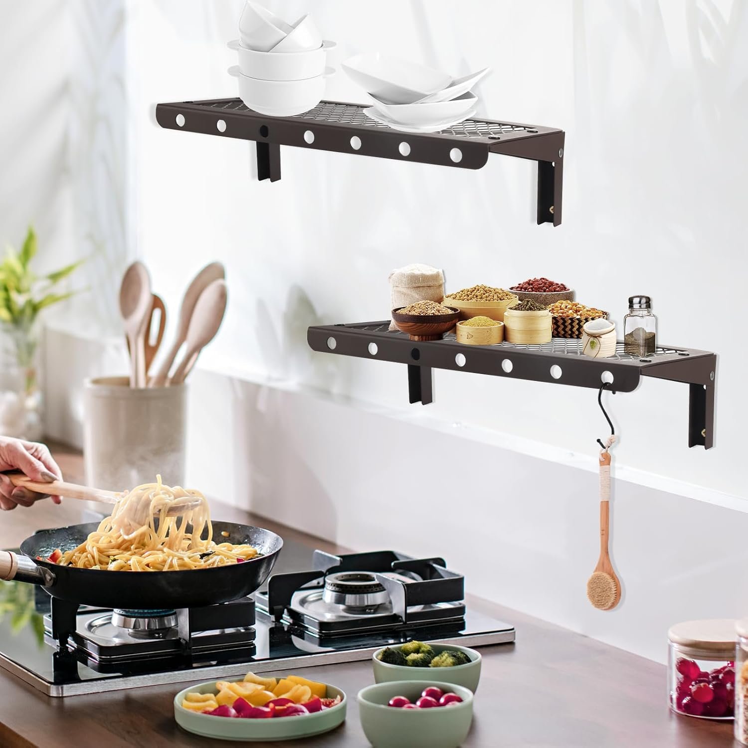 Sedesbon specializes in the design and development of household kitchen supplies. This excellent metal wall shelf is a metal shelf that we have developed for home kitchen storage, decoration and design, with storage function and also added folding function, which not only can meet your practical needs in different scenarios, but also can save more space.