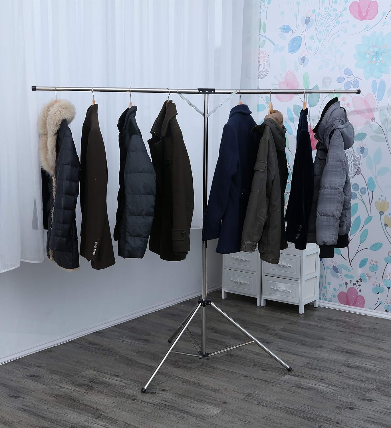 【Length and Hight Adjustable】The length of the two arms can be extended from 49 to 73 inches, the height can be adjusted from 37 to 69 inches, and the size of the tripod base can also be adjusted to adapt to different use scenarios. suits for towels, shirts, dresses, coats, blankets.
