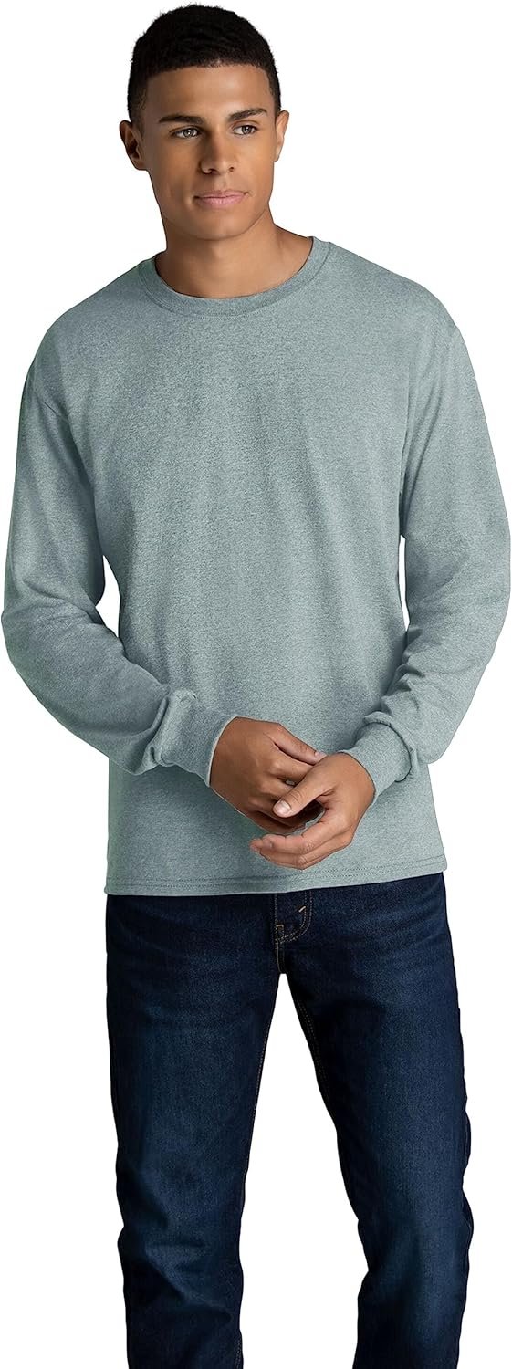 Fruit of the loom long sleeve T-shirts have a breathable, lightweight jersey knit fabric with a flexible fit that allows for easy movement and maximum comfort. Made from 100% cotton, this long sleeve t-shirt is designed to provide exceptional softness and breathability, keeping you cool and comfortable all day long. Crafted with attention to detail ensuring it withstands regular wear and tear for years to come. Available in a range of colors and perfect for all seasons this long sleeve is a staple to keep in your closet.