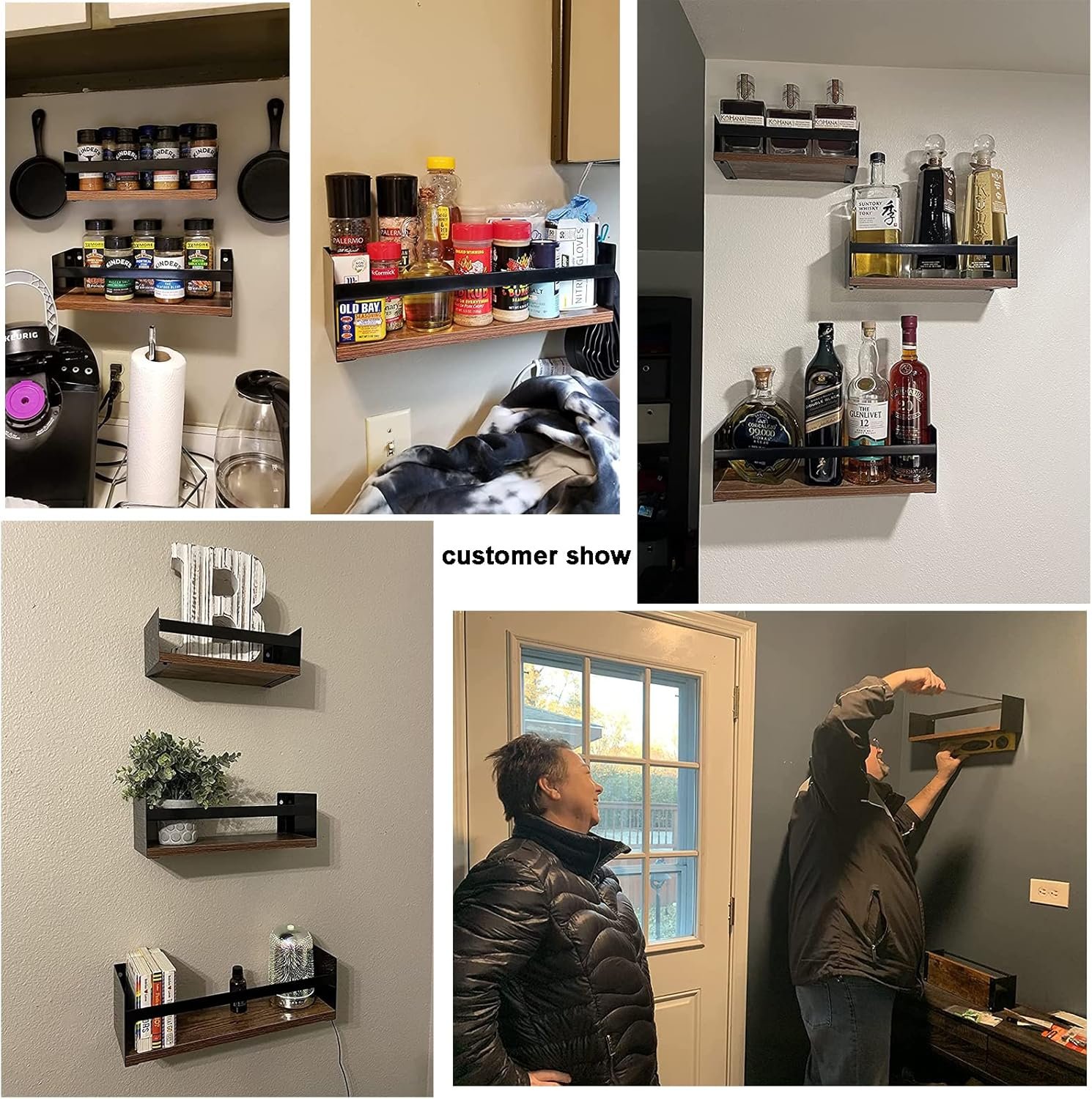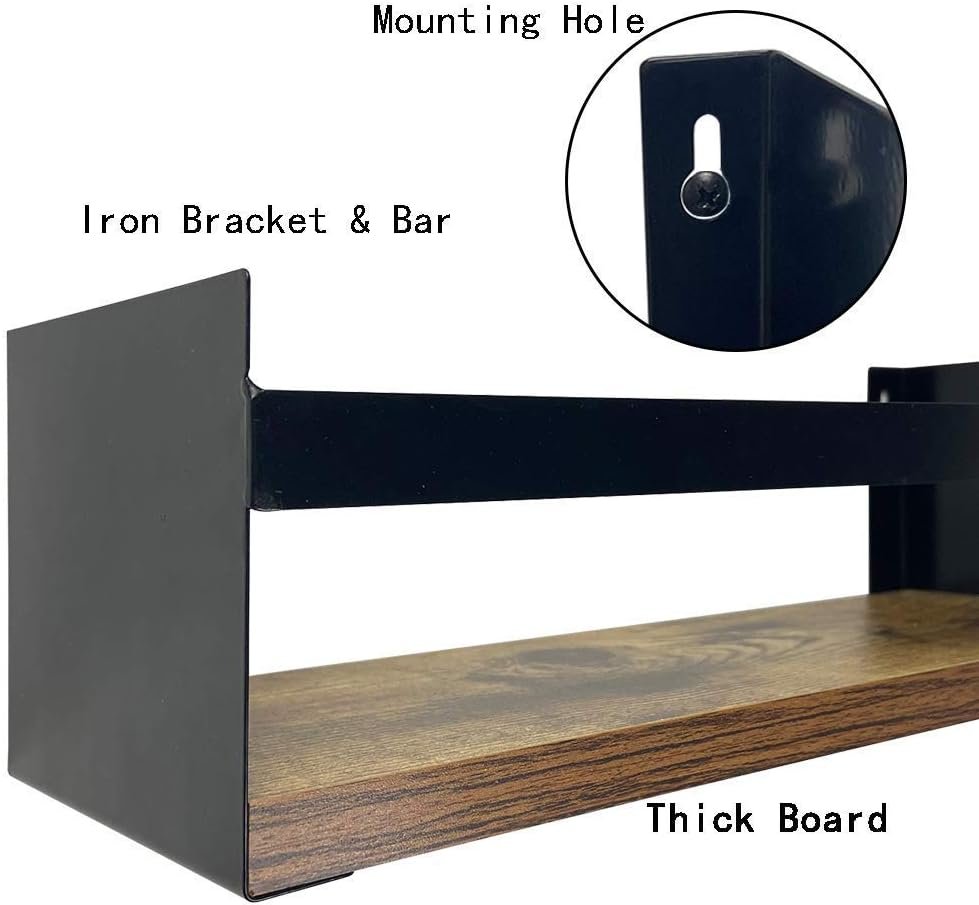 Multipurpose Floating Shelves with Bar: Our rustic shelves offer adequate storage space that you can reduce clutter by organizing them on the wall without taking up much space. You can also hang them separately to display kid books in nursery, hold shampoo in the bathroom, organize seasoning and spice in the kitchen. The extra crossbars keep items from falling off and you can hang things on the bar.