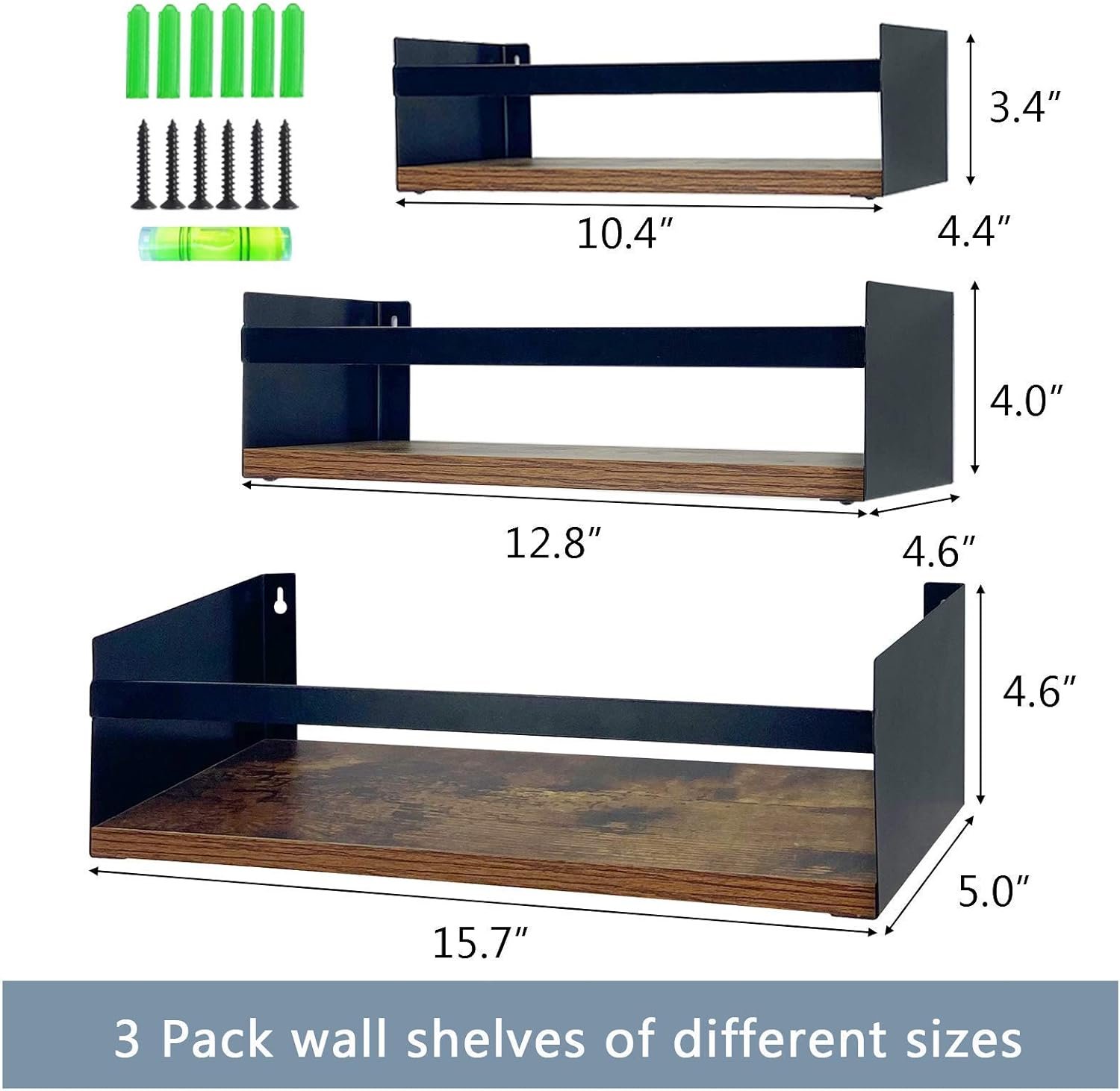 Easy to Install: Come with necessary hardware, leveler and instructions included, installing these shelfs for walls will be a breeze for you. 3 pack shelfs vary in sizes, large shelf: 15.7x5x4.6 inches, medium shelf: 12.8×4.6×4 inches, small shelf: 10.4×4.4×3.4 inches.