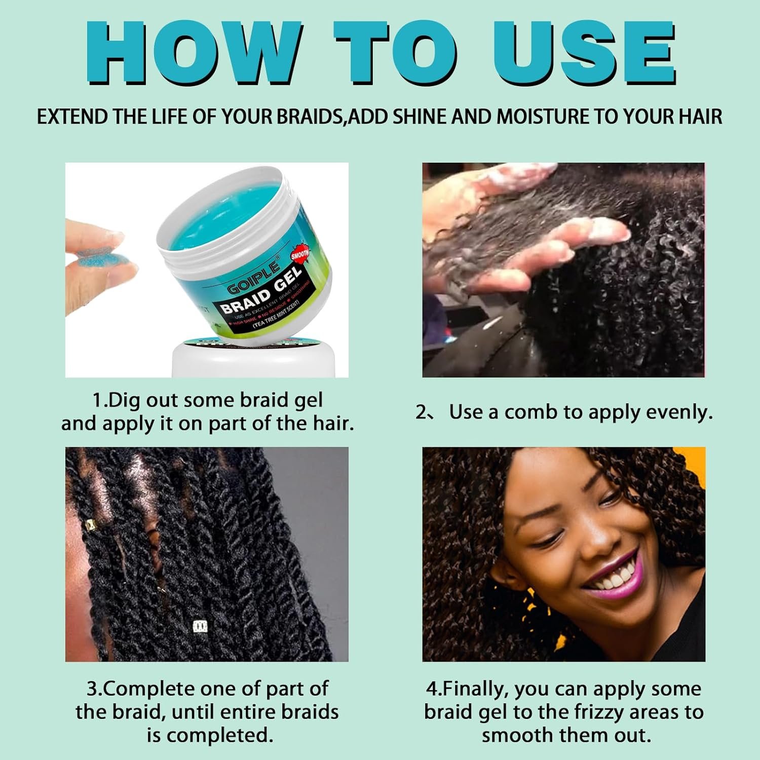 Our braiding gel for box braids is easy to use, suitable for beginners, and harmless to skin and hair!