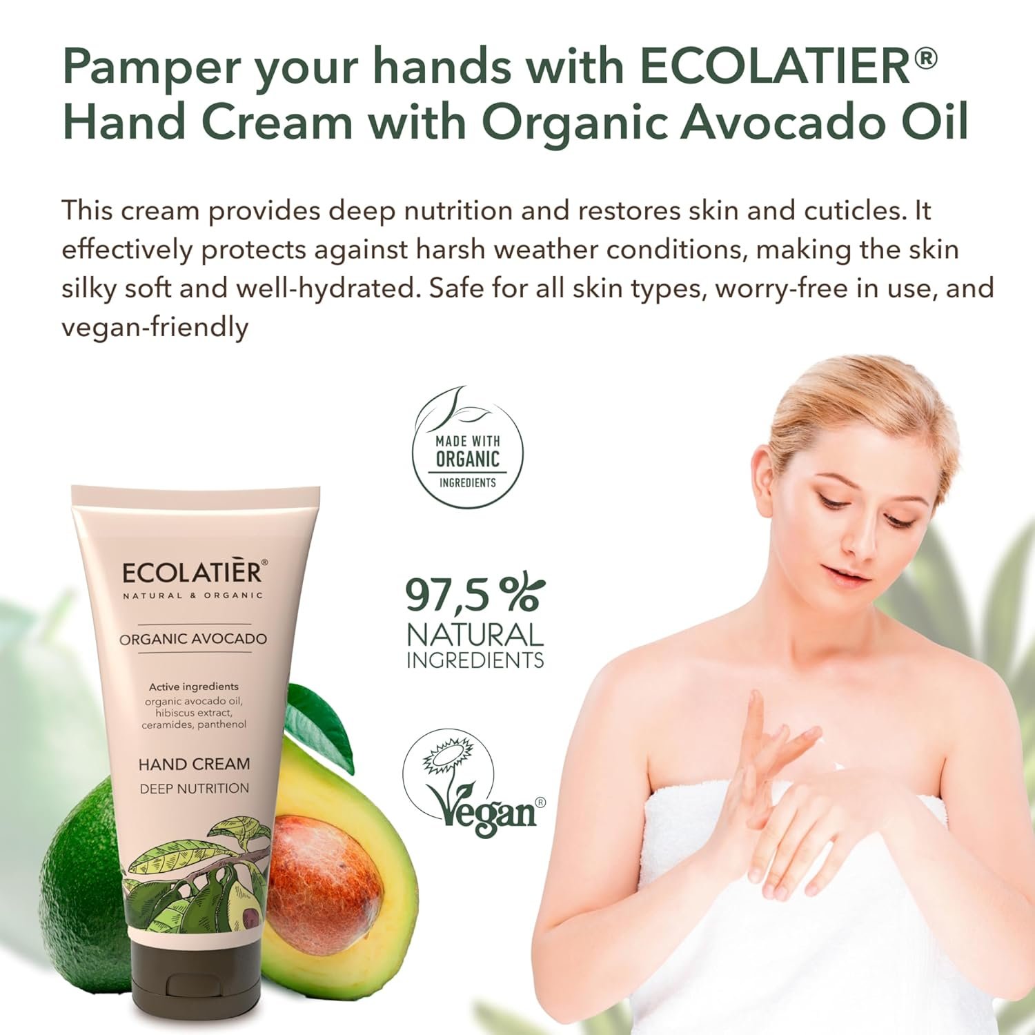 Silky Smooth Skin: Organic Avocado oil and Hibiscus extract in this anti aging hand cream restore and soften skin, leaving hands and cuticles smooth, nourished, and well-moisturized.