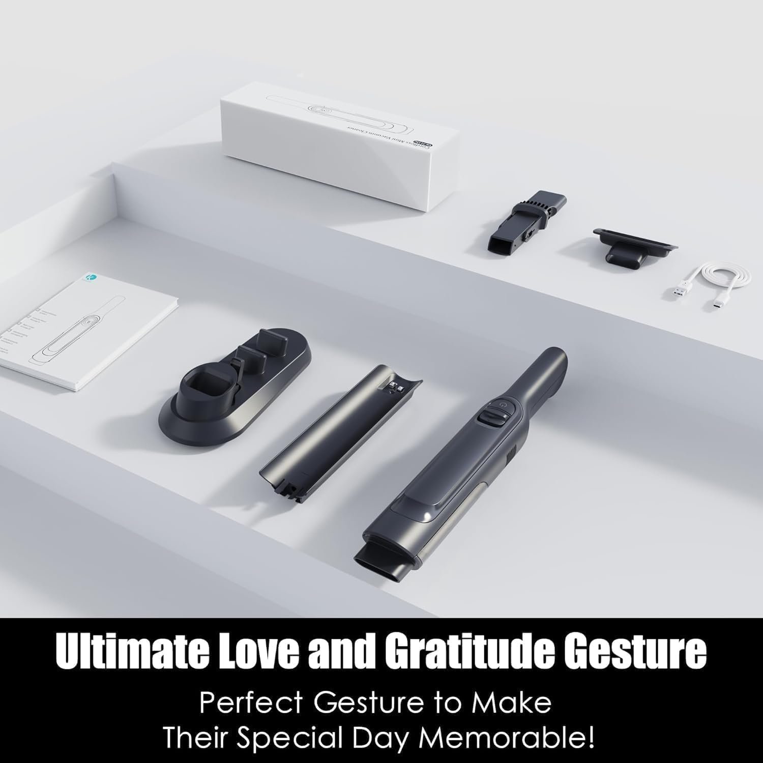 【Ultimate Love and Gratitude Gesture】 1x PROMOMO Handheld Vacuum, 1x Duster Crevice Tool, 1x Multi-Surface Pet Tool, 1x Charging Plate, 1x Accessory Storage Dock, 1x H13 HEPA Filter (installed), 1x Type-C Charging Cable, 1x User Manual, 1x 12-months Warranty.