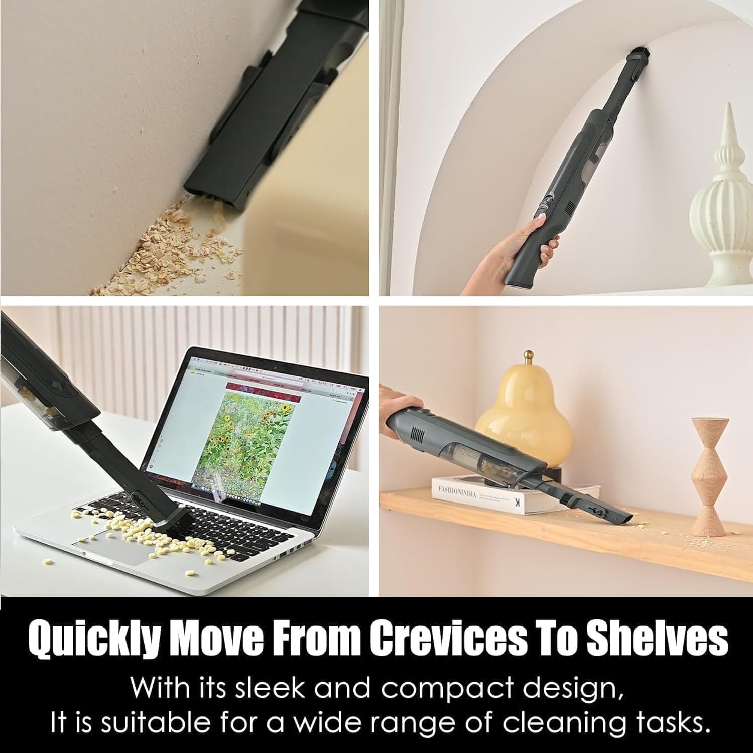 【Low Noise Handheld Vacuum Cordless】Our unique noise reduction design allows for a high-powered suction experience while minimizing motor noise. Now you can effortlessly use your vacuum even during phone calls without disturbance.