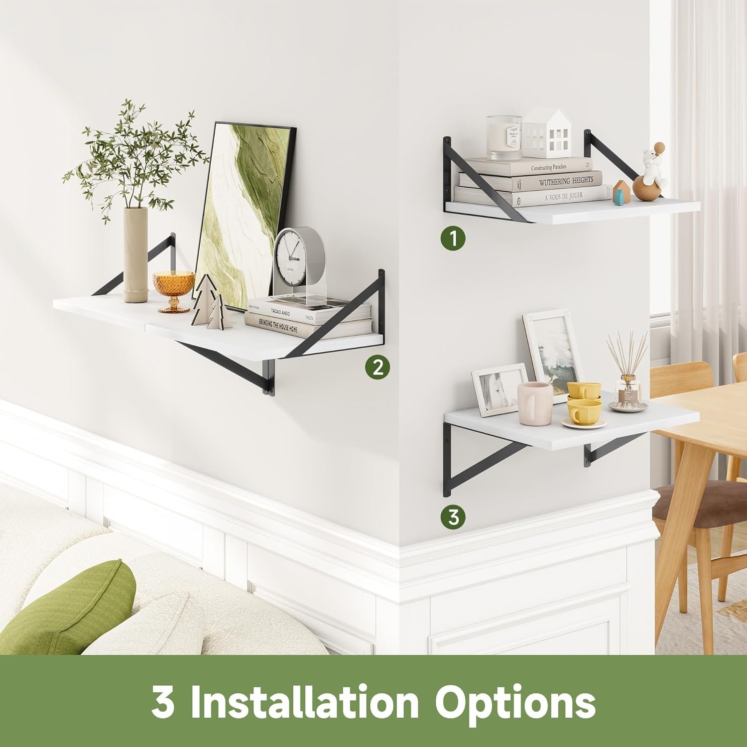 【 Multiple Installation Options】The uniquely designed smooth surface metal triangular brackets can be installed above or below the board according to space and usage.Even wall bookshelves can also seamlessly connect multiple shelves to form a longer shelf for a larger space.
