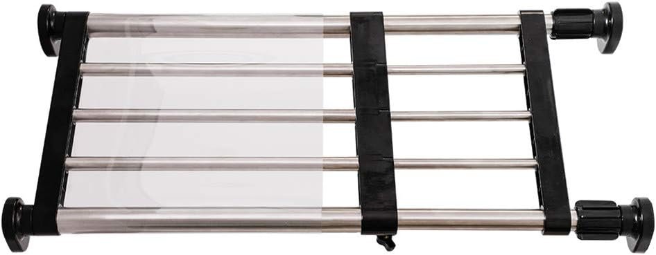 ADJUSTABLE LENGTH: 5 tube telescopic, suitable for placing towels, clothes, storage boxes, hats and so on and hanging clothes, shirts, dresses, jackets, ties, scarves, etc. #0778-4-BK and #0778-5BK series with a transparent spacer, can be placed small objects. Note: the plate on the product is transparent.