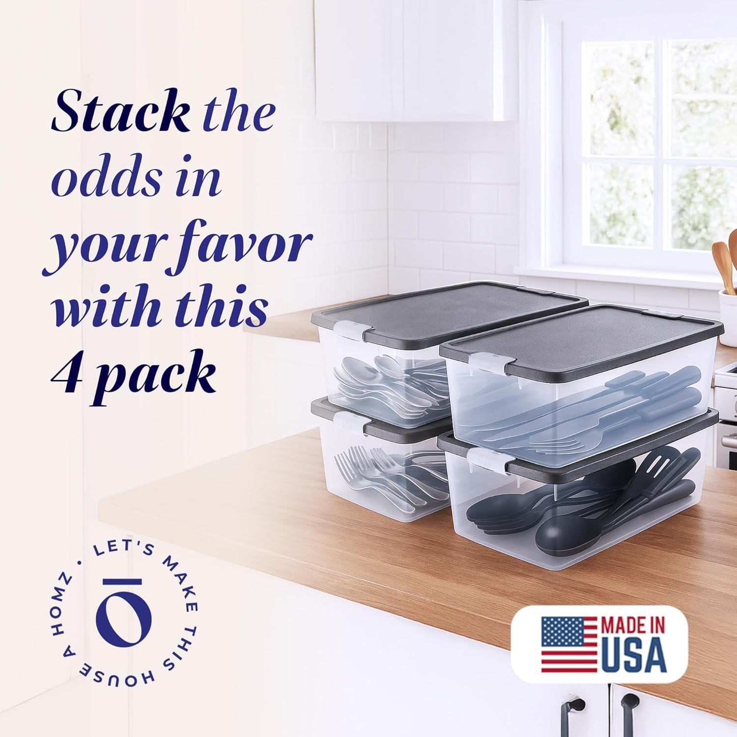 HOMZ for Your Home: From organization to storage, we have the container that you are looking for. Proudly made in the USA, allow us to make your house a HOMZ.