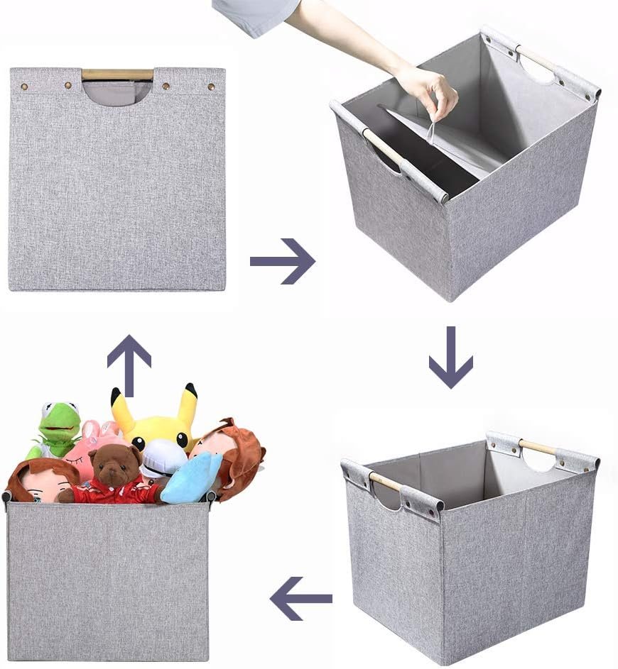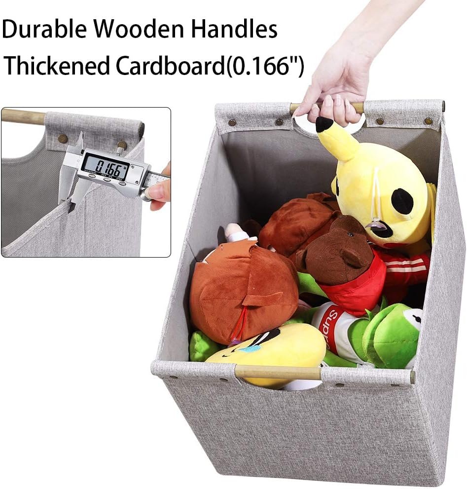 Durable Carrying Handles: strong wooden handles make the linen fabric storage basket easy for you to carry heavy loads, while the superior fabric quality ensures that the box has the strength to bear. These foldable boxes are both functional and decorative, strong and elegant.