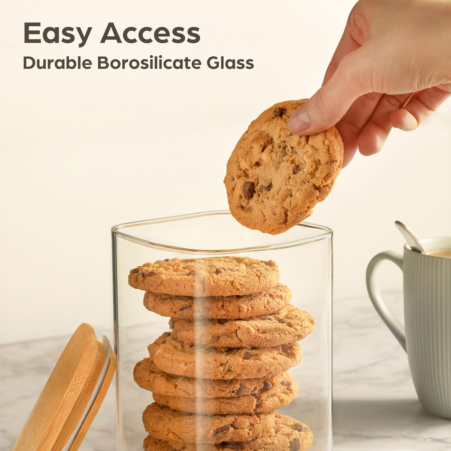 Space-saving Shape: The square design of the storage jars with lids allows for efficient use of space in cabinets and shelves, ideal for kitchens of any size.