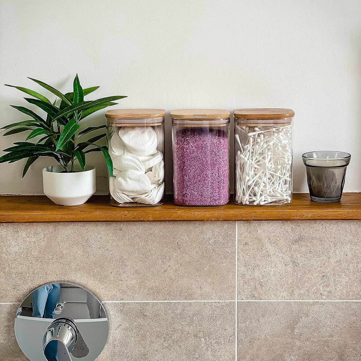 Elegant Design: 3-piece set of square glass containers (34oz each) with airtight bamboo lids (height: 6 inches, width/length: 4 inches), perfect for modern kitchen decor.