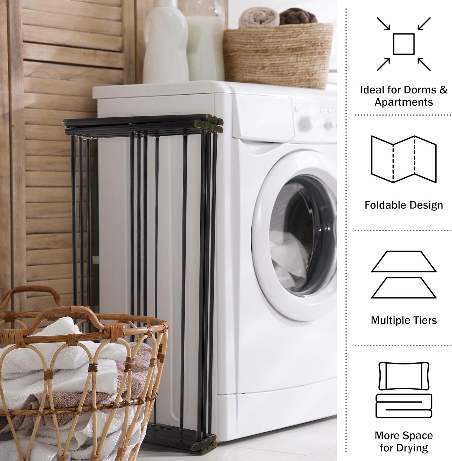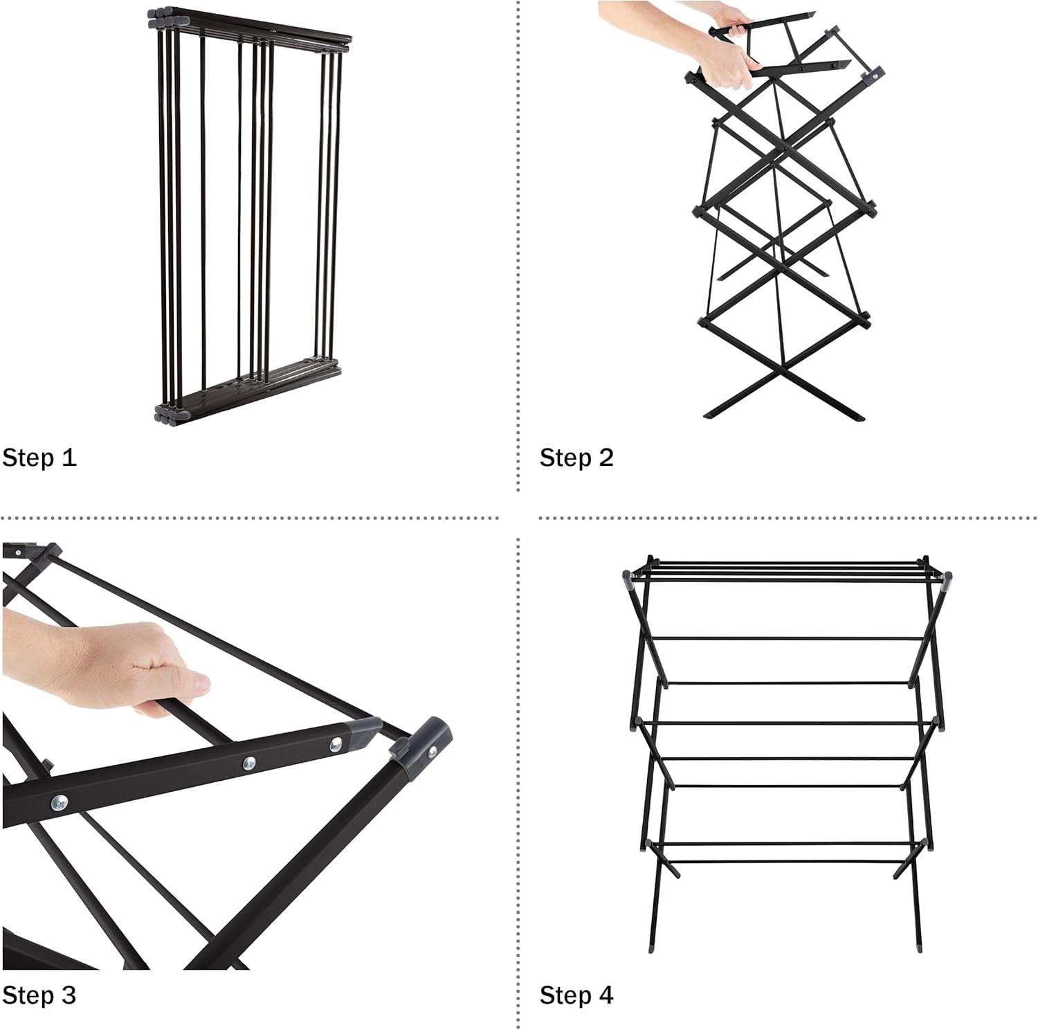 COLLAPSIBLE DRYING RACK – This laundry drying rack provides space for drying sweaters, shoes, pillowcases, and more. It’s easily collapsible with an accordion design for compact storage when not in use, ideal for small homes, apartments, or dorms.