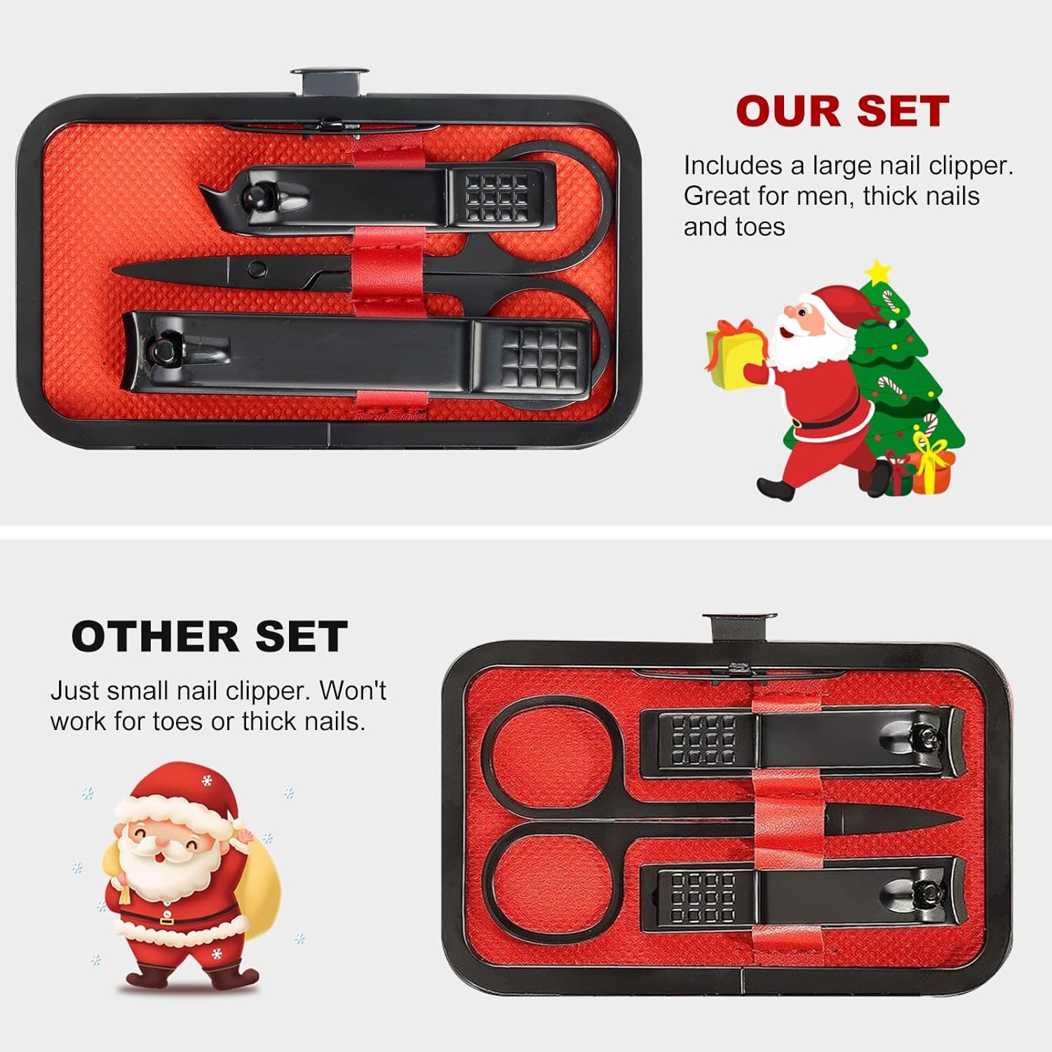 STOCKING STUFFERS FOR MEN: Professional manicure set is a great Christmas mens stocking stuffers ideas, box is designed with christmas gifts in mind featuring Santa Claus using a clipper. This gift will surely bring joy and laughter to whoever receives it.