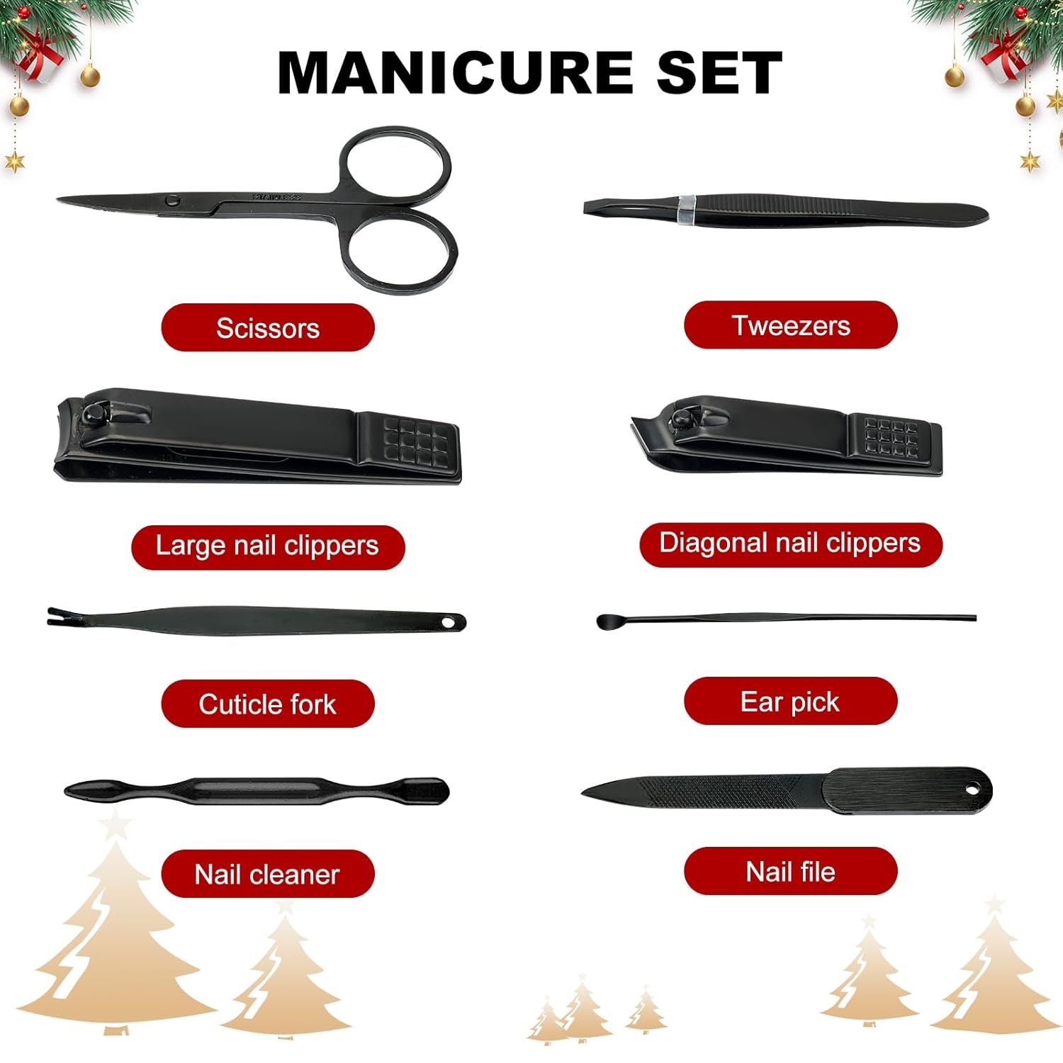 GIFTABLE FOR CHRISTMAS: Mens personal care manicure kit, exquisite appearance and portable size, nice present for men husbands father. Steady black PU leather case and and eye-catching red lining, stylish and functional good for men. Gfftable box package for Christmas stocking stuffers for men, husband, boyfriend, brother, families, friends, wowen and girls.