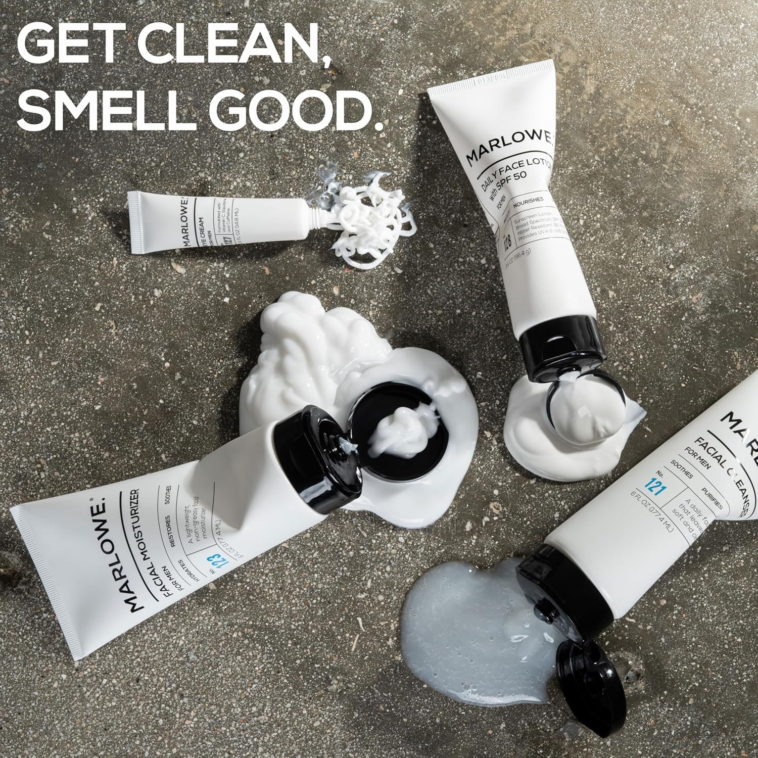 Fresh Masculine Scent: Lightly scented with a clean balance of Aloe and Citrus followed by a woodsy base. Experience the fresh scent of your favorite MARLOWE. hydrating moisturizer face cream in the morning and at night